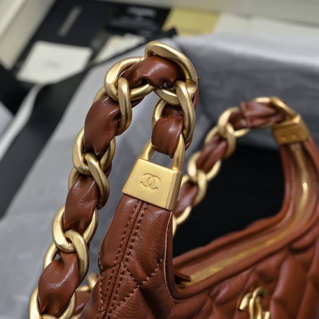 中号chane*24A的hobo越来越好看了!又一大爆款 很复古很vintage,一眼就爱上了,姐妹们快跟上!很高级的一款腋下!粗皮穿链条很帅,整体很轻很随意很慵懒~日常搭配几乎完美,简直是通勤人的福音!