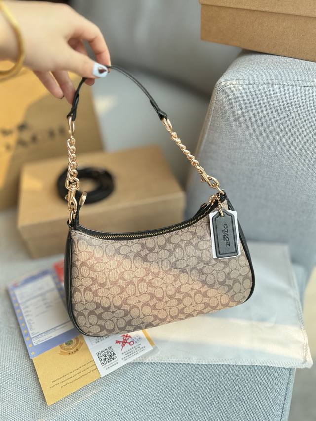 配盒 Size:24×13 Coach蔻驰 Teri 25 老花 半月腋下包手提单肩 结合了teri腋下包,奢华细腻的面料搭配时尚雅致的teri腋下包,更加活力
