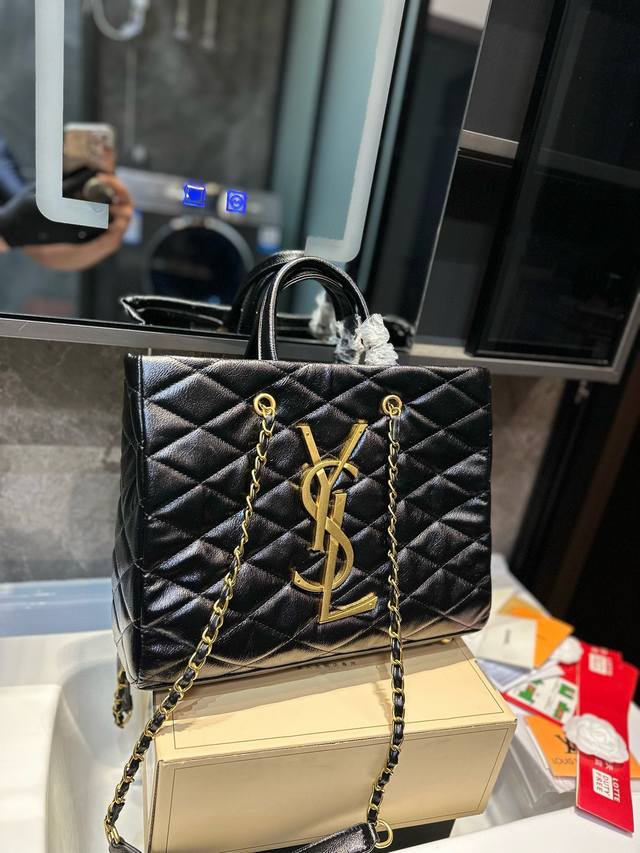 Ysl 手提包 菱格 托特购物袋 容量充足 手感舒适 可装下日常所需的所有物品 通勤都可以 M尺寸:34 26