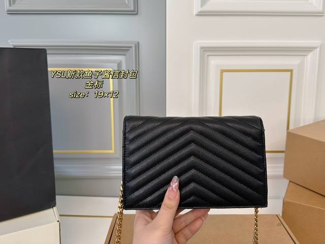 / 折叠盒飞机盒 Size:19×12 Ysl 圣罗兰鱼子酱信封包 信封口盖v字绗缝元素 简约又高级,轻便实用! 颜值在线,凹造型逛街都很方便!