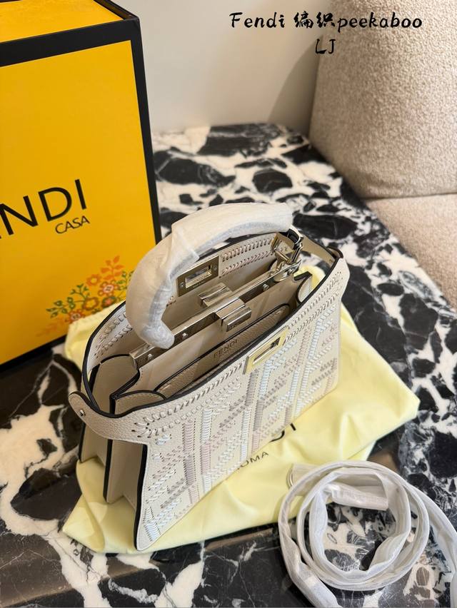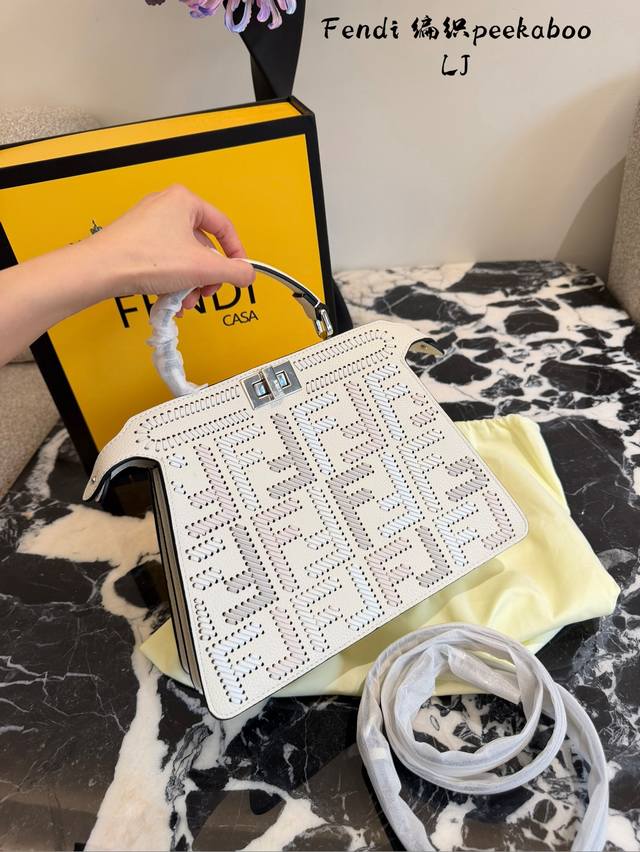 Fendi编织手袋一包雙面 休閒正式我一包掌握 這次新款Peekaboo 手工交織設計 經典Ff Logo 另一面又是簡約典雅的包面 一包兩種風格 採用羅馬小牛