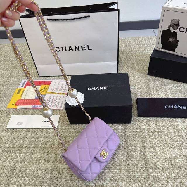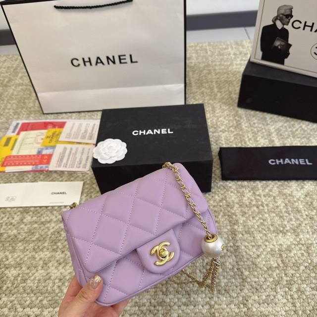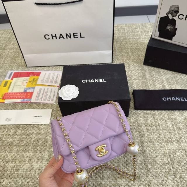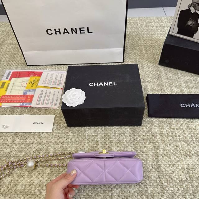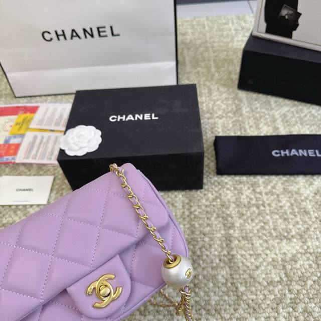 Chanel香奈儿 小香风包 新款现货新款在链条点缀了大珍珠非常的挺阔条是双珠可调节的设计更新颖独特两个接扣装饰一样珍珠球拿在手上是很有质感的満镶嵌了一个小双c可调节的链条任何身高都能hold住,简直不要太美好24S珍珠调节球mini Cf链条包与金色相互映衬虽然是羊皮的,但是一点都不会软链简约大气又很精致的感觉,24S两颗珍珠 尺寸18Cm