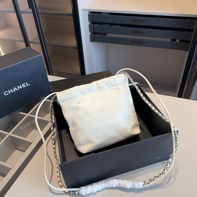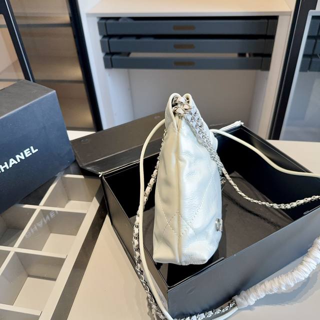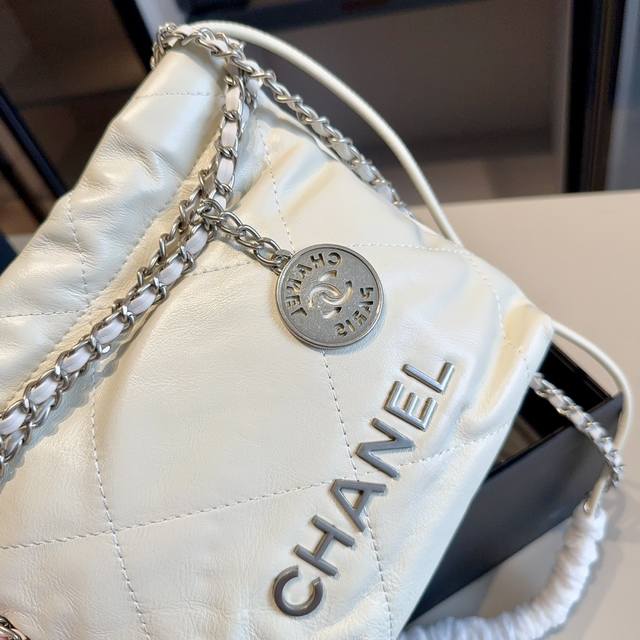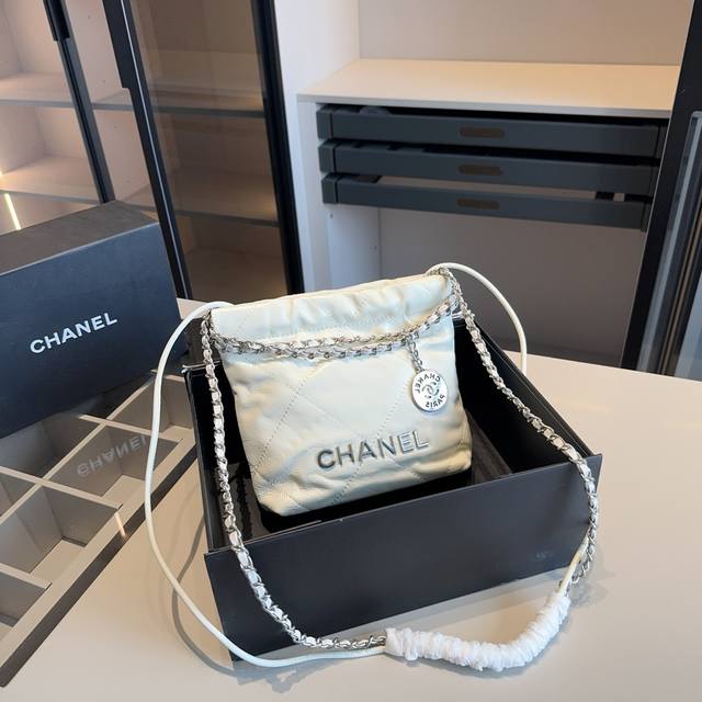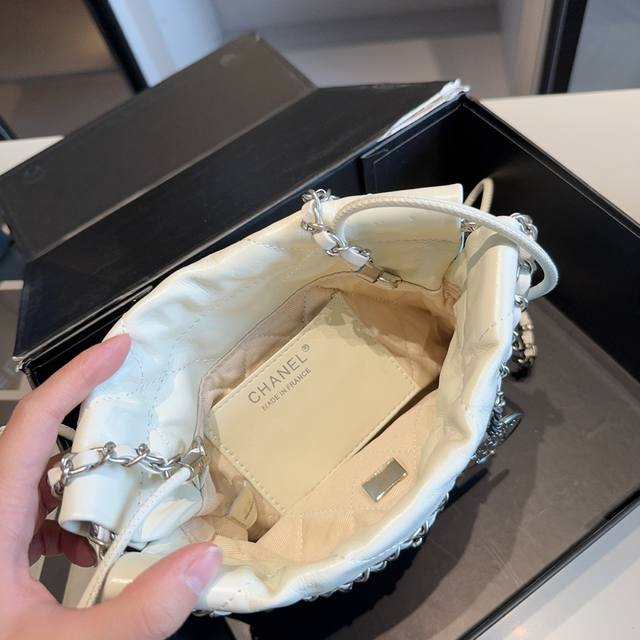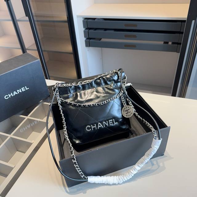 高端原单chanel香奈儿专柜爆款~银色logo~22Bag迷你垃圾袋小香原版哑光小羊皮面料哦!采用顶级复刻原版五金配件!经典logo!原版做工!皮质手感超级棒哦!堪比专柜品质~人手必备单品原版折叠礼盒包装 Size:18*19*6上口23