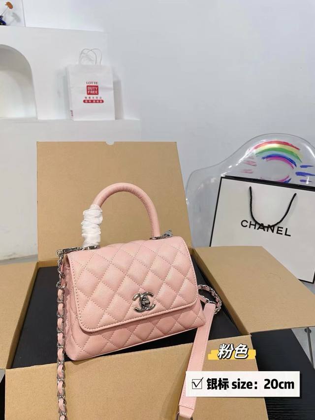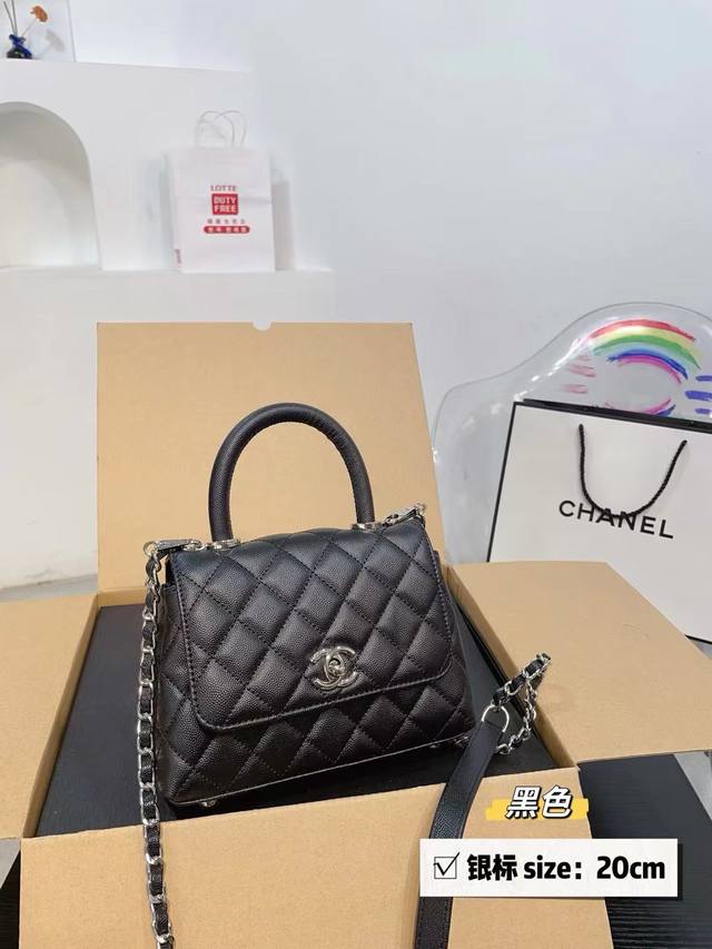 Chanel香奈儿 1Coco Handle 塞尔兹堡系列 女士手提口盖包,专柜在售香奈儿 Hass 御用鱼子酱材质!原装五金扣 励泰手缝定制,手提是高级的蜥蜴牛皮!时尚百搭超级好看美美哒 配折叠礼盒尺寸 19 12Cm