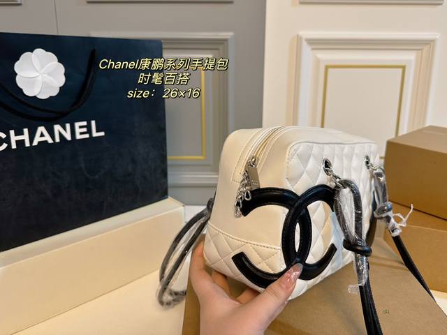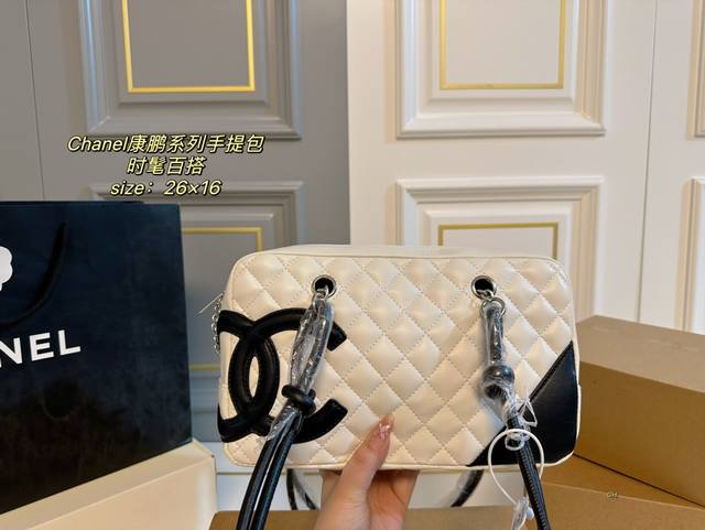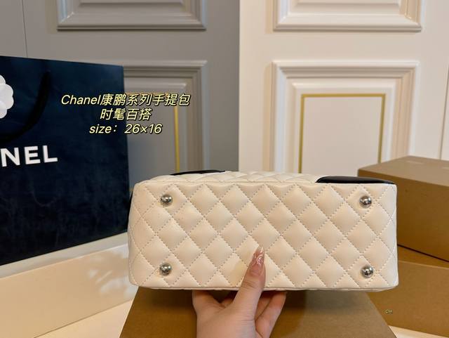 无盒 Size:26×16 Chanel 香奈儿康鹏系列手提包 整体设计以经典菱格纹和大双c 为设计点,充满活力又吸睛 酷酷的休闲款式,实用性很强 中性风格男女