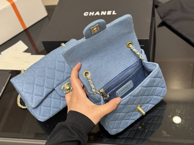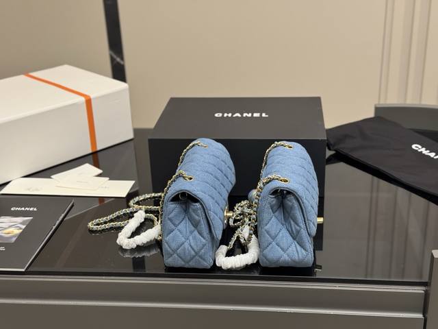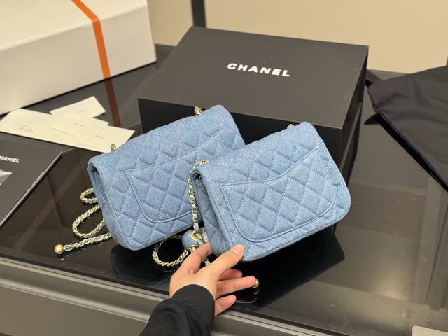 配盒 香奈儿 牛仔方胖子金球链条包 可爱的小金球哪个女孩不爱呢 经典的黑金色搭配 柔软的小羊皮质感舒服而细腻链条上的小金球也是质感满满 尺寸:17Cm 20Cm