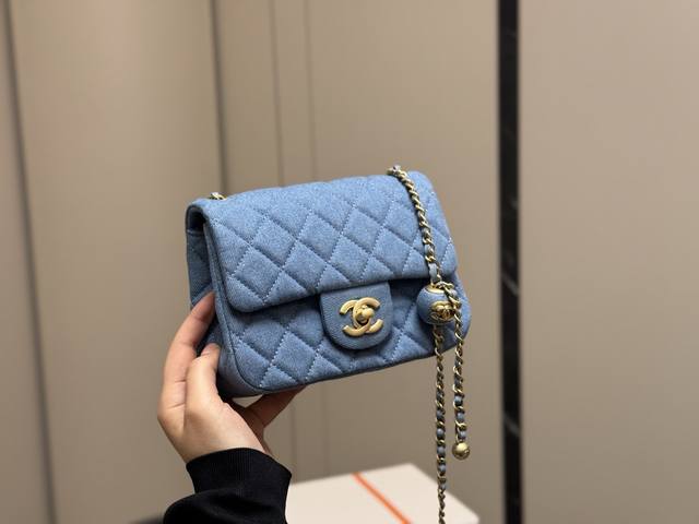/ 配盒 香奈儿 牛仔方胖子金球链条包 可爱的小金球哪个女孩不爱呢 经典的黑金色搭配 柔软的小羊皮质感舒服而细腻链条上的小金球也是质感满满 尺寸:17Cm 20Cm