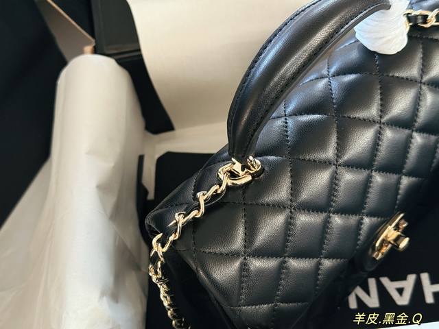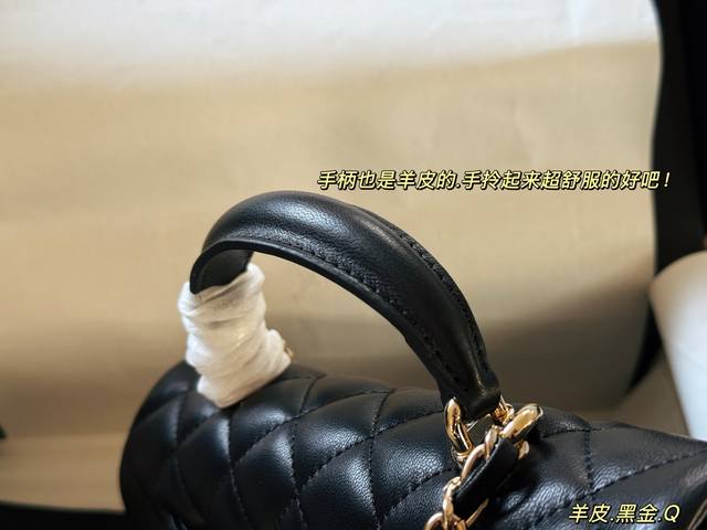 配盒 小羊皮 Size :20*12Cm 小香家 Chanel23K皮手柄Cf让经典再升级~ 可以手提的!包包很实用! 羊皮配复古五金扣,优雅又公主! Mini Cf Handle真香大小正好 可以放Pro Max
