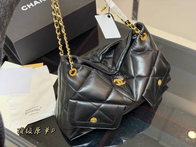 折叠盒 Chanel19 Bag 自从欧阳娜娜带货后全球断货很难买到 皮质是羊皮有点像羽绒服包包...