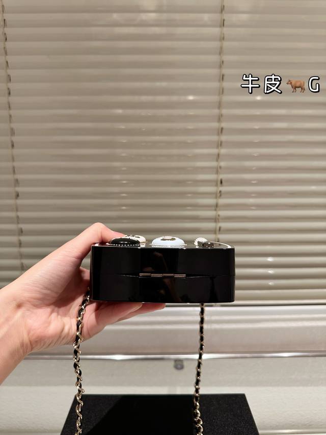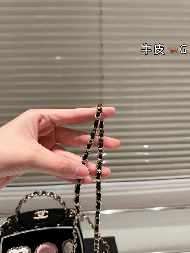 复刻版 DDD Chanel 25B彩妆盘造型硬式晚宴包 DDD 这款香奈儿创意化妆盒包灵感来自彩妆调色盘,硬质方形设计+金属链条肩带,超有质感!表面点缀心形、圆形徽章,印有双C Logo和 Nel ,趣味十足又很有辨识度。小巧尺寸,既能当晚宴包,也能做化妆盒,实用又时髦,绝对是时尚圈的焦点单品! DDD 尺寸13 13 DDD
