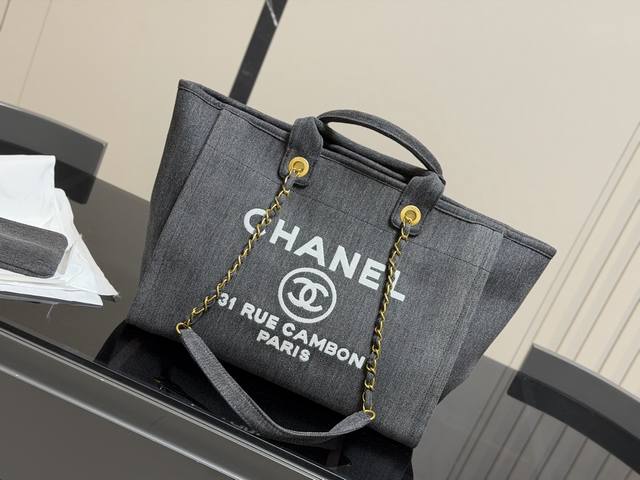 / 无盒 尺寸:35.27Cm 香奈儿 牛仔沙滩包 安排!安排! 今年出的这个沙滩包可太好看了 水洗做旧款更加有高级感
