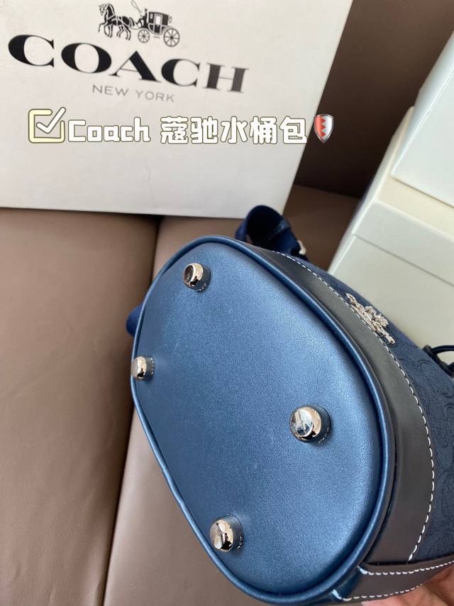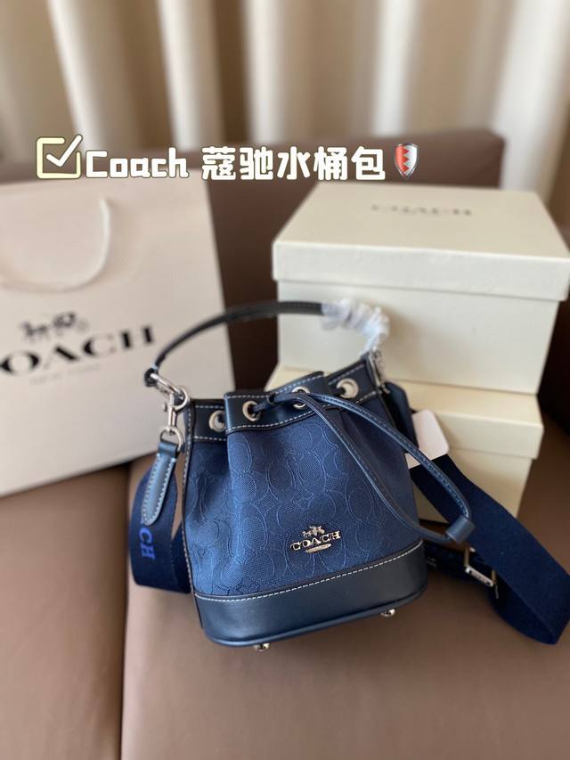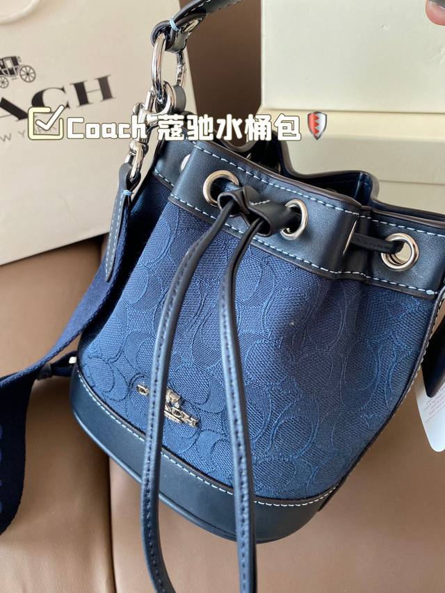 Coach 配盒子 蔻驰水桶包 今天分享的这只包包和以往的水桶包有很大的区别哦 搭配感完全不一样 这只包包会更加淑女一些 采用抽绳系设计 便于开合使用 并且空间非常大 清新夏日 时髦轻便超百搭