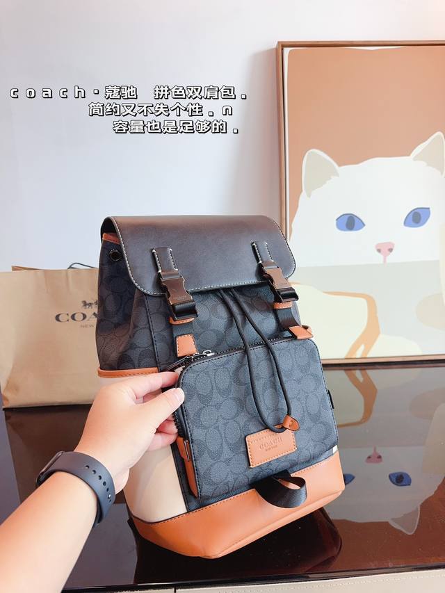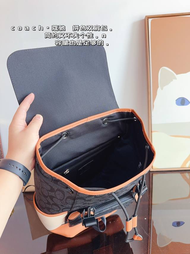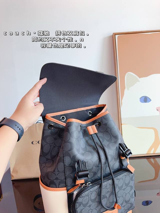 / Coa蔻驰 新款翻盖抽绳track双肩包 顶级品质 亮泽五金logo 炒鸡火 实用的款式 多用款 内衬logo时尚百搭款式 超级减龄 喜欢的抓紧自留啦 尺寸:2
