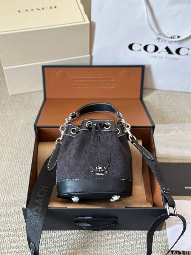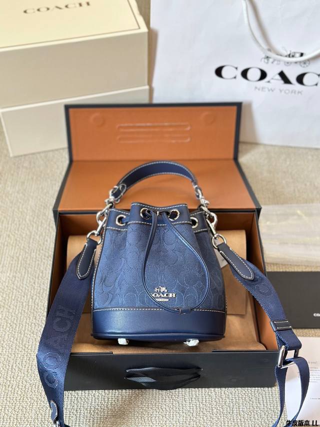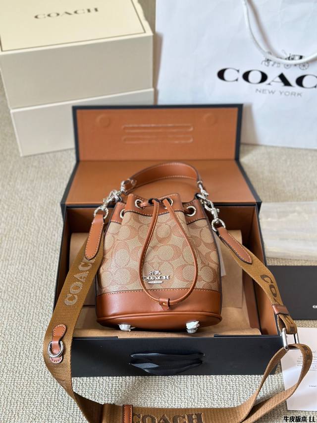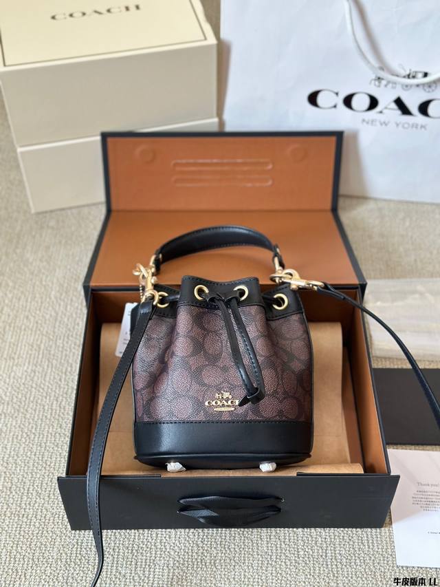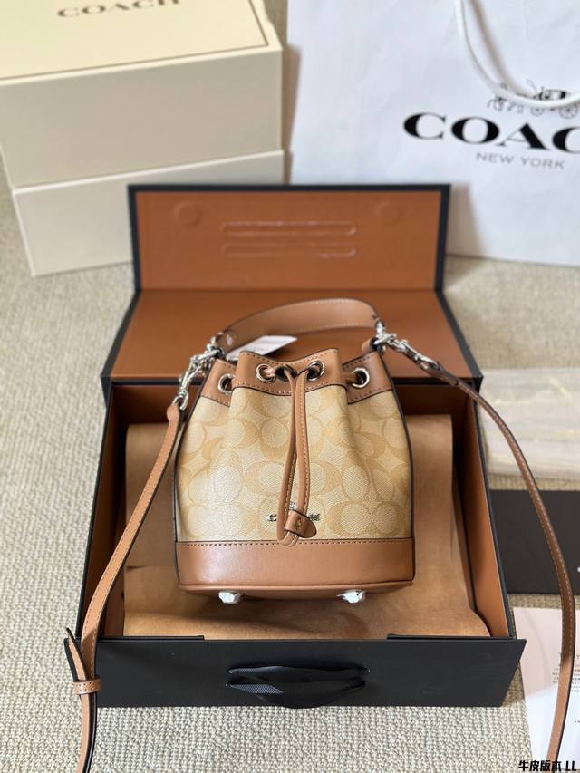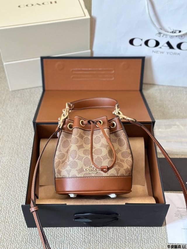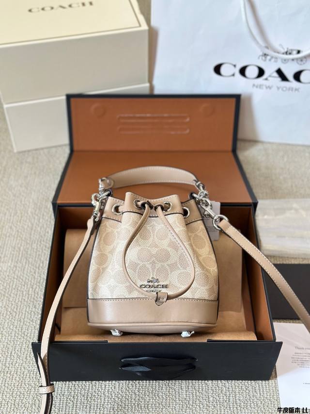 牛皮版本 Coach 迷你mini水桶包 抽绳设计开合 可手提可斜挎 一长一短两条肩带 可拆卸 尺寸 17 20Cm 太可爱啦奶呼呼的小可爱~~