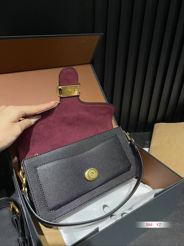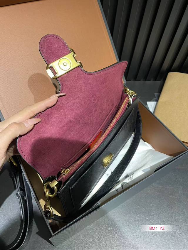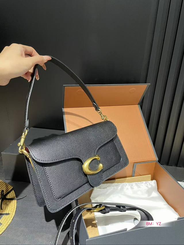 Coach 家酒神包tabby手提包单肩斜挎包。让小姐姐第一眼看到就会爱上它。被誉为平价版小酒神包的蔻驰tabby,复古又百搭,很受欢迎啊。五金扣厚实,整体精致小巧,还特别能装。每个包配一长一短两天可卸肩带,内部结构分层合理,中间一个带拉链的隔层小袋,把包分成三格,简直完美这个尺寸觉得刚刚好合适,手提单肩斜挎都没有问题的!尺寸:26*14
