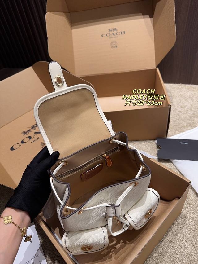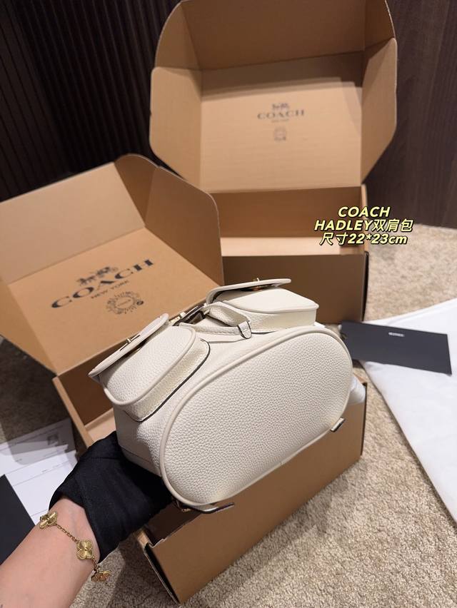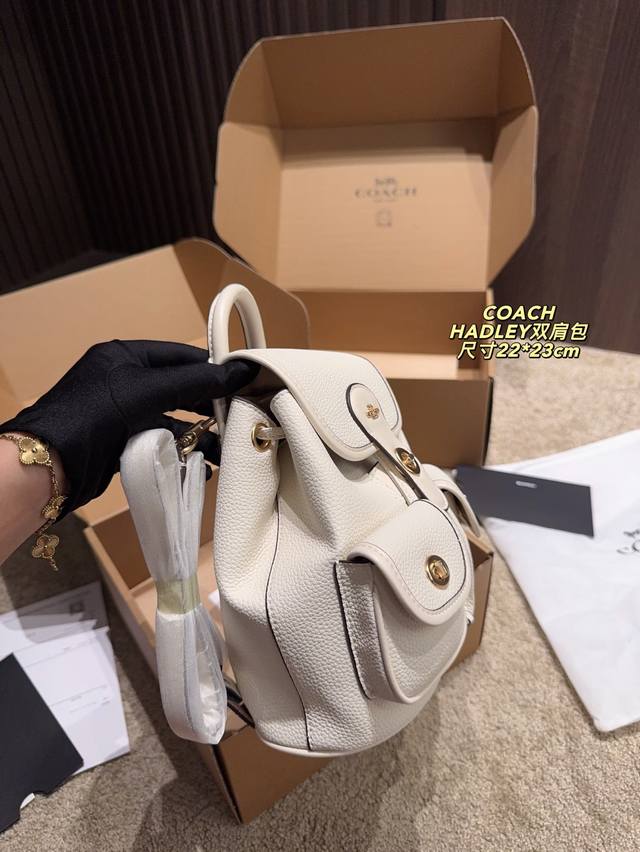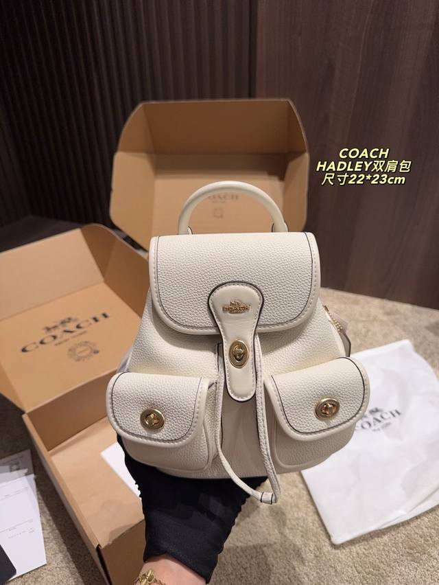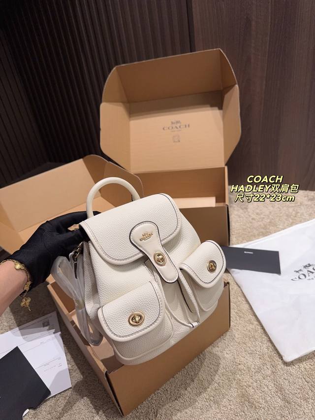 / 配折叠盒尺寸22*23Cm 蔻驰 Coach Hadley双肩包 鹅软石牛皮材质,手感软糯舒适,精致旋转扣装饰,满足日常所需。 透气耐磨材质,告别闷热负担 多口