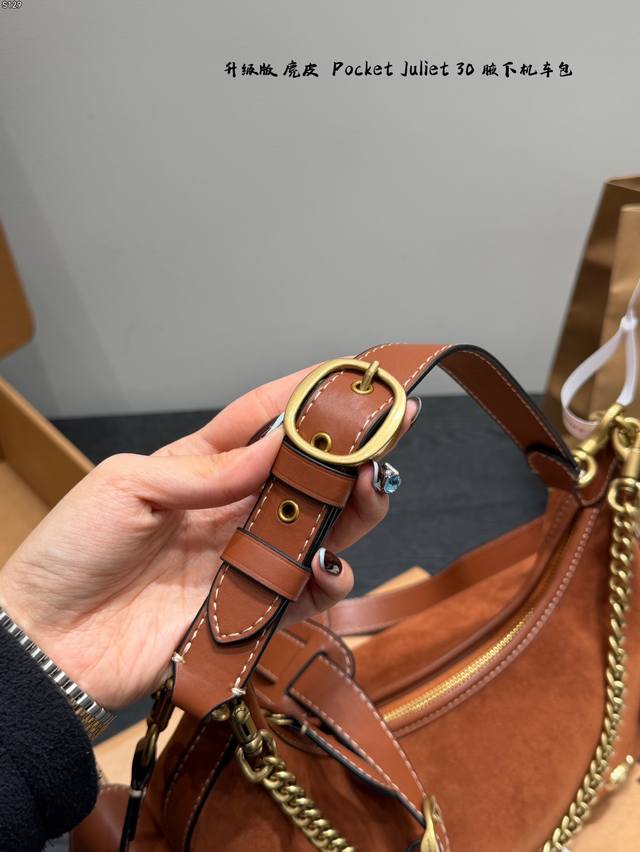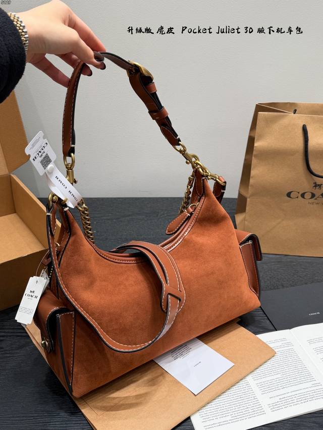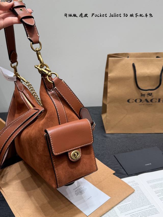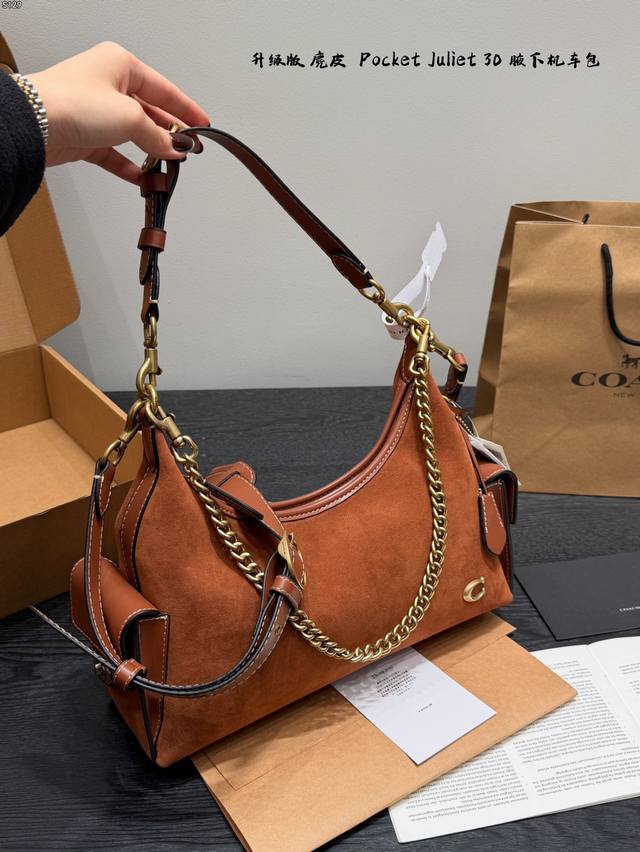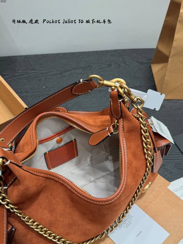 飞机盒 升级版 Size:30×24 Coach蔻驰 麂皮棕 Pocketjuliet 30 机车包 链条包 腋下包 单肩包 秋日复古感~ 满足不同穿搭风格!酷妹辣妹甜妹都能驾驭 背上直接气场两米八! 可盐可甜,出街秒变焦点 人人都爱腋下包