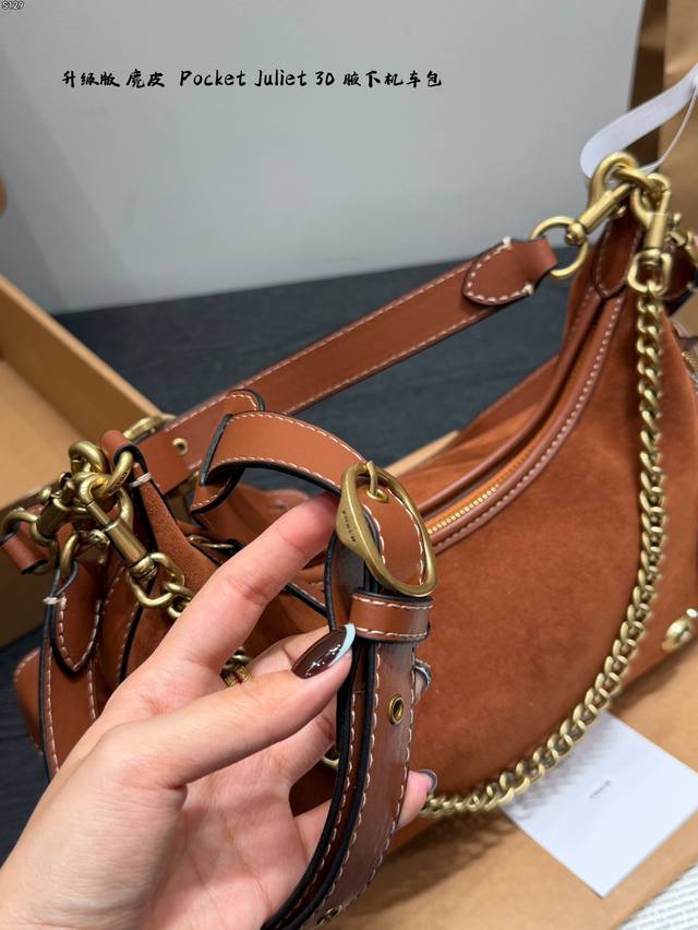 / 飞机盒 升级版 Size:30×24 Coach蔻驰 麂皮棕 Pocketjuliet 30 机车包 链条包 腋下包 单肩包 秋日复古感~ 满足不同穿搭风格!酷