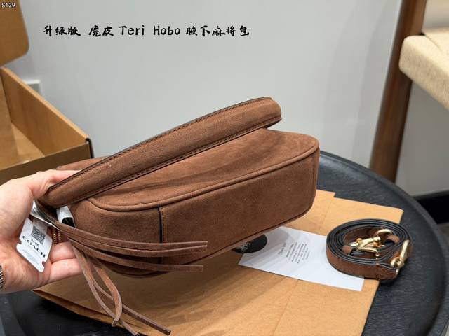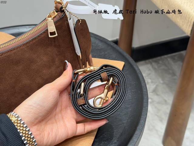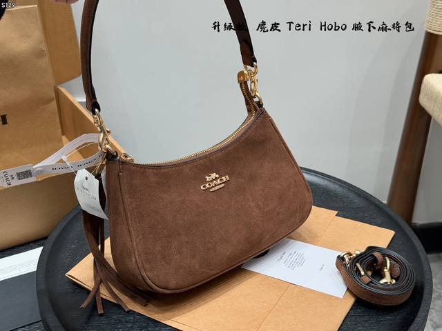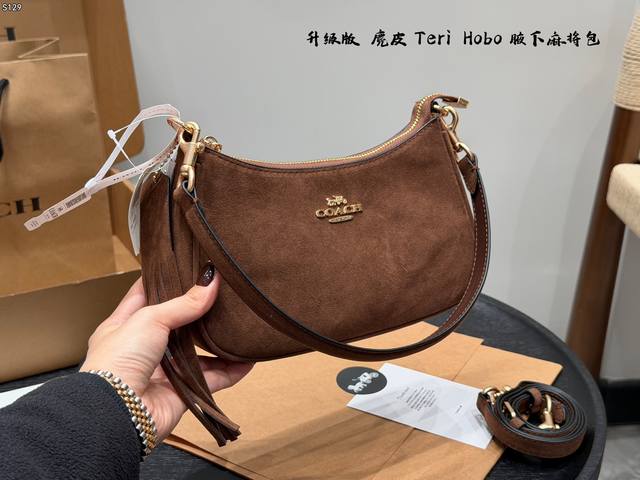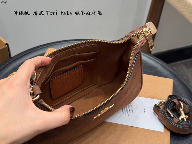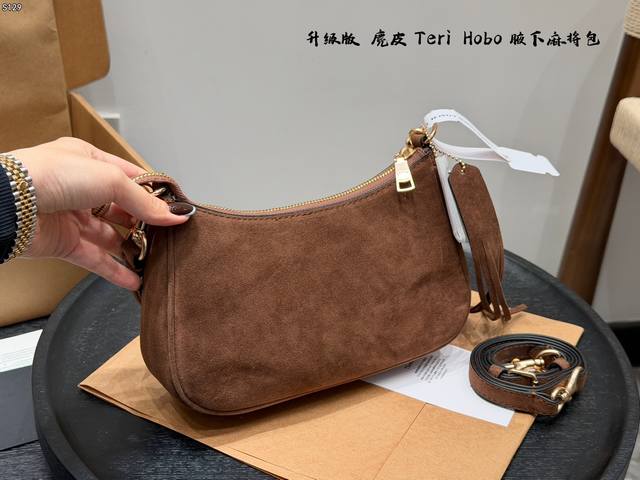 飞机盒 升级版 蔻驰Coach Teri 腋下包 Hobo麻将包麂皮棕 麂皮真的越看越有质感 搭配小小Teir 超级好看! 还有自带的小挂件 秋冬氛围感直接拿捏啦 Size:24X7X13Cm