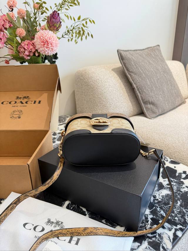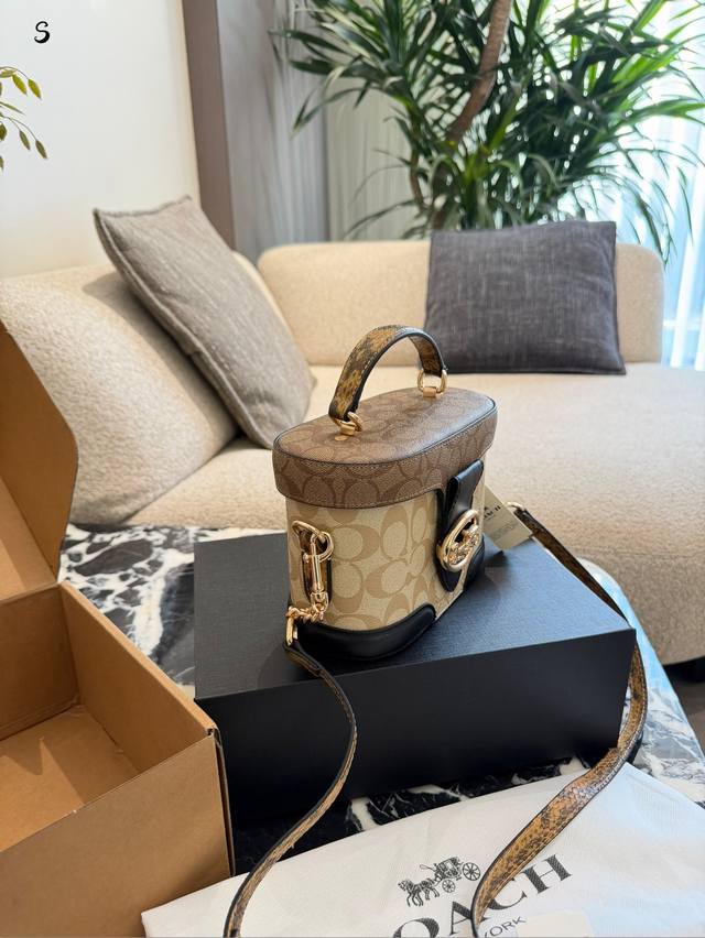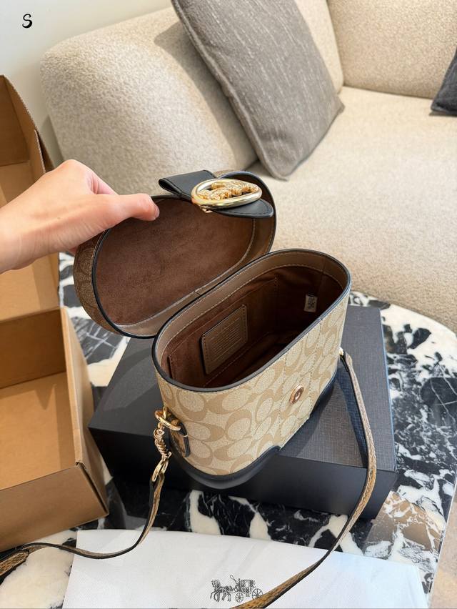 礼盒包装 Coach 迷你mini水桶包 抽绳设计开合 可手提可斜挎 一长一短两条肩带 可拆卸 尺寸 17 20Cm 太可爱啦奶呼呼的小可爱~~