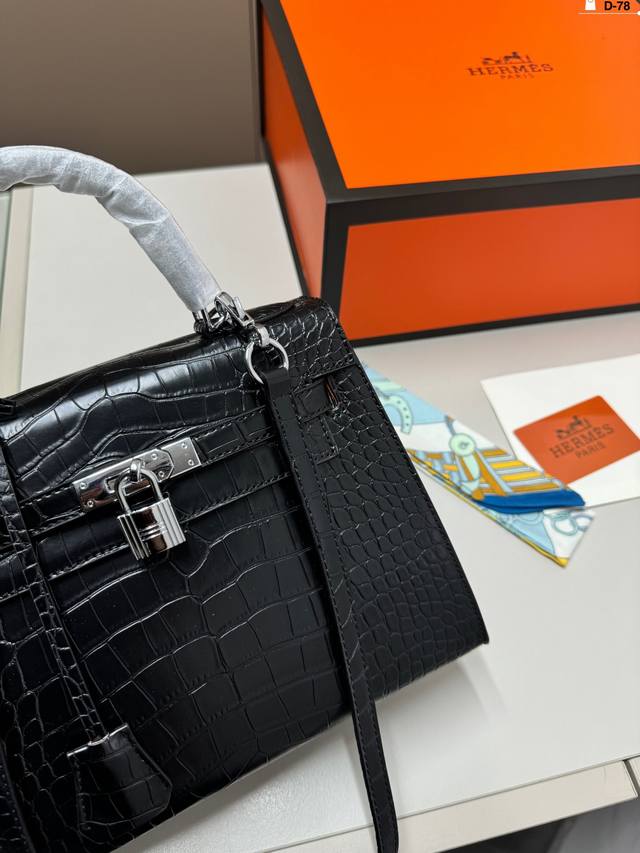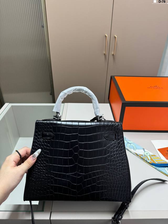 Hermes爱马仕高级鳄鱼纹凯莉包 Hermès 爱马仕原版皮质 明星同款 原版质量 Hermès每个女孩的必备品 D-78尺寸25.8.18折叠盒