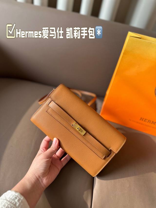 配盒牛皮 Hermes爱马仕 凯莉手包 好随意搭配 不管怎么穿随便一背都好看 一点都不挑人很显气质 超有feel 这款其实很韩风 尺寸22*13