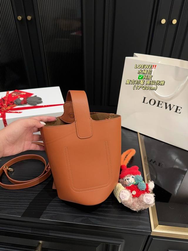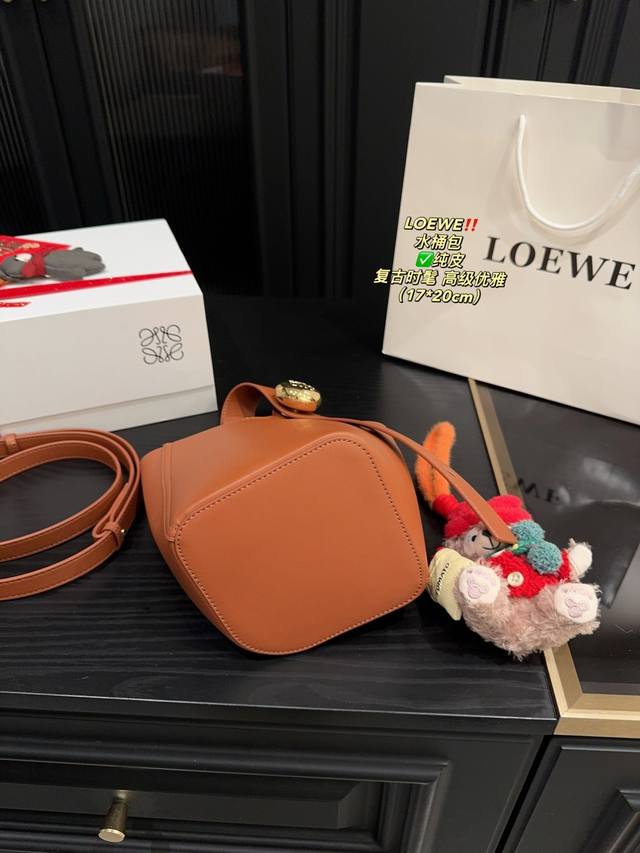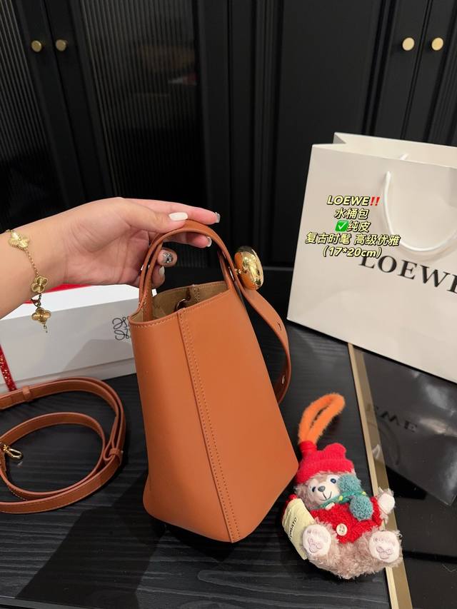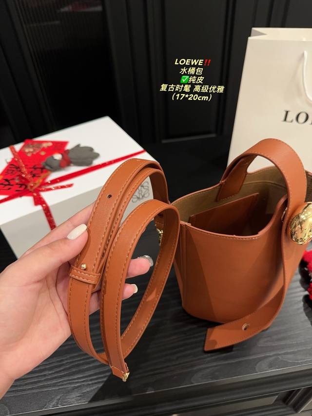 纯皮 配折叠盒尺寸17.20 罗意威 水桶包 Loewe 轻松演绎复古时髦 包型挺阔,简约而不简单不需要过多的装饰,日常搭配西装和t恤,就能将高级感体现的淋漓尽