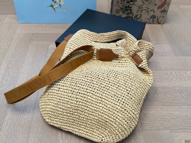 配礼盒. Loewe. 罗意威 编织菜篮子 又一个爆款 刺绣Logo哦、拉菲草坚韧牢固 自重非常轻 颜值又高 出门旅游...