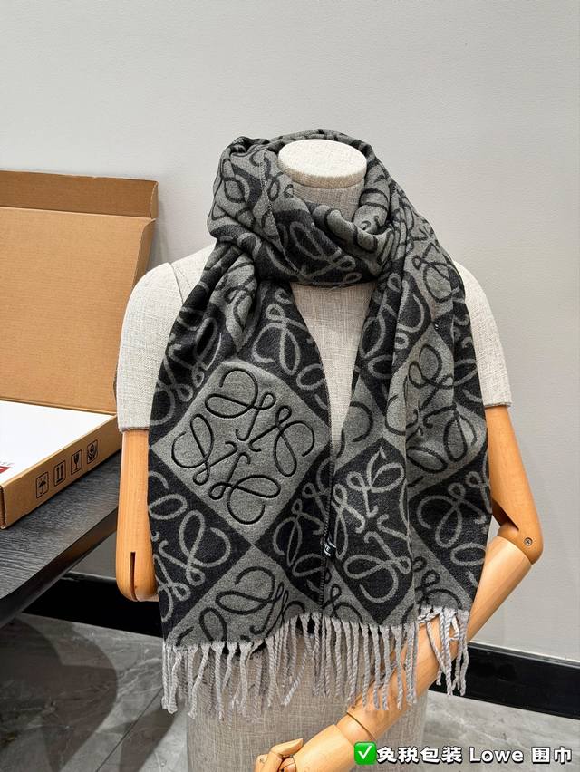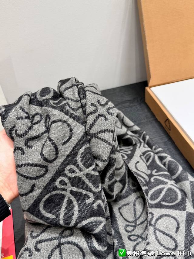 配盒 Size:190×65 Loewe罗意威秋冬必备韩系围巾 很柔软保暖的一款围巾 百搭实用也做披肩, 不仅好看又可以保暖~...