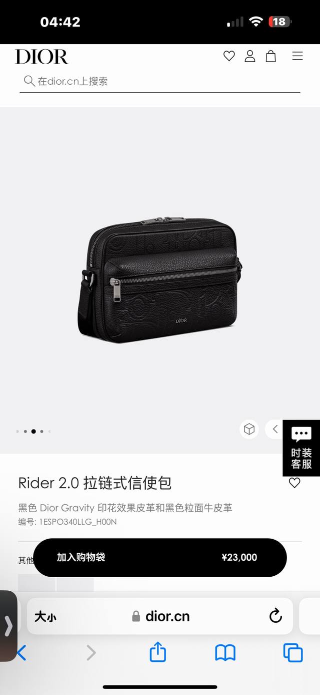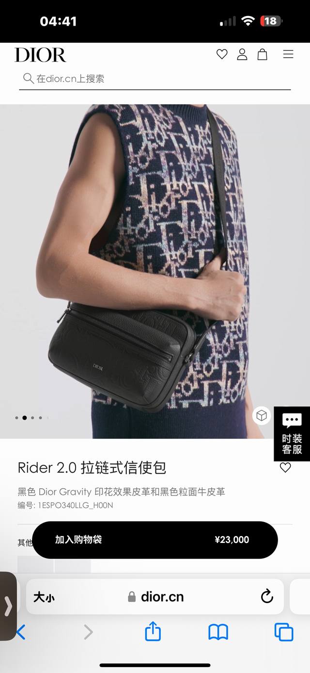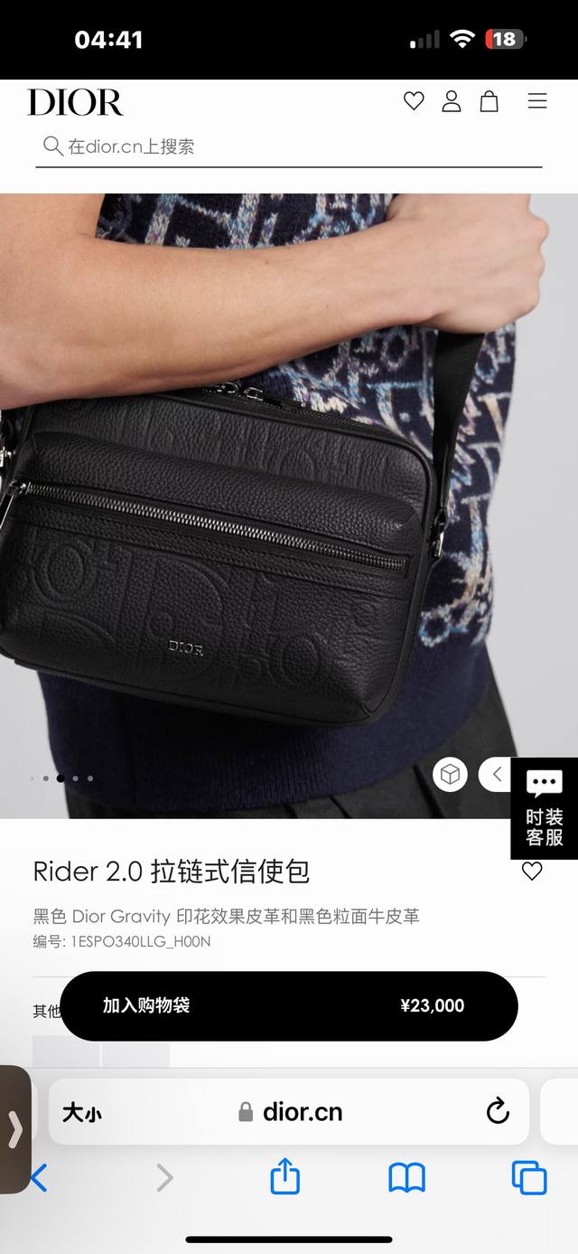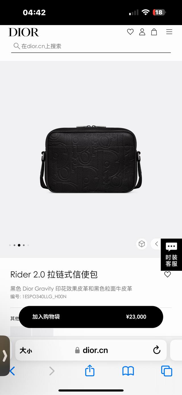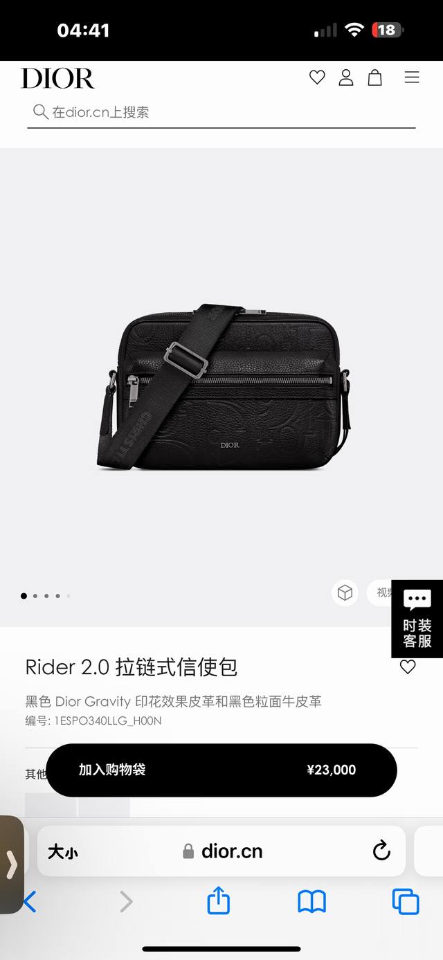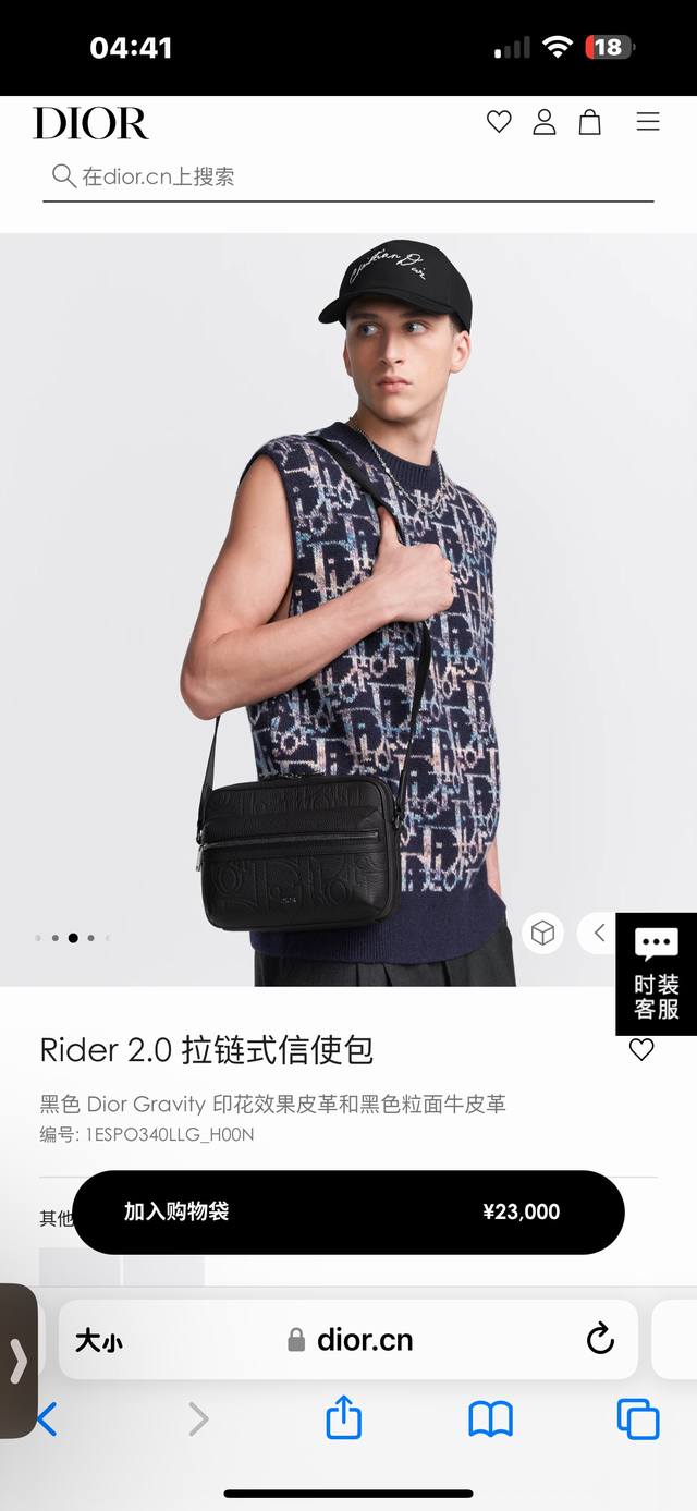 这款 Rider 2.0 拉链式信使包实用而精巧,是日常生活的理想单品。Dior Gravity 印花效果皮革采用压花工艺将经典图案精致地呈现于黑色牛皮革之上,正面饰以同色调粒面牛皮革细节和 Dior 标志,充分彰显 Dior 工坊的精湛工艺。拉链隔层和正面口袋可收纳各种个人用品,搭配可调节带,可肩背或斜挎。