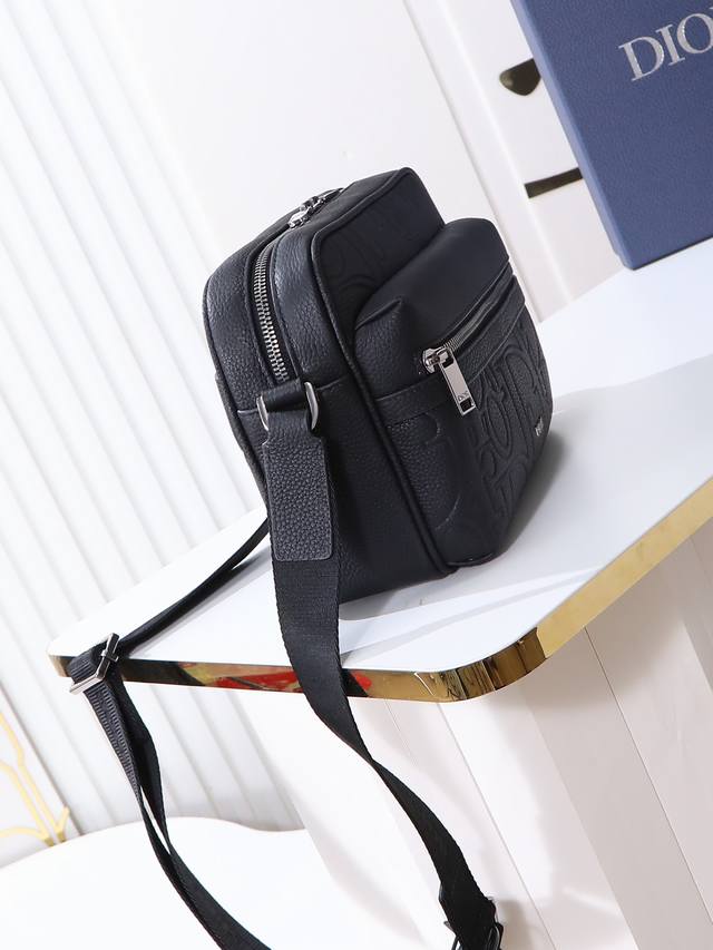 这款 Rider 2.0 拉链式信使包实用而精巧,是日常生活的理想单品。Dior Gravity 印花效果皮革采用压花工艺将经典图案精致地呈现于黑色牛皮革之上,正面饰以同色调粒面牛皮革细节和 Dior 标志,充分彰显 Dior 工坊的精湛工艺。拉链隔层和正面口袋可收纳各种个人用品,搭配可调节带,可肩背或斜挎。