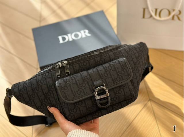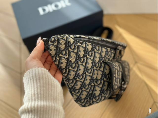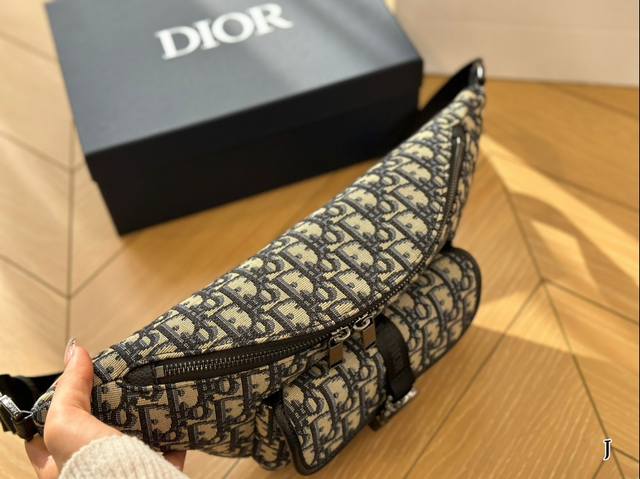 / 配盒 这款dior 8腰包是迪奥2025春季新品,时尚实用。采用oblique面料精心制作,正面翻盖口袋饰以dior8搭扣。拉链隔层可收纳各种日常用品,搭配可调