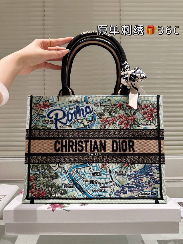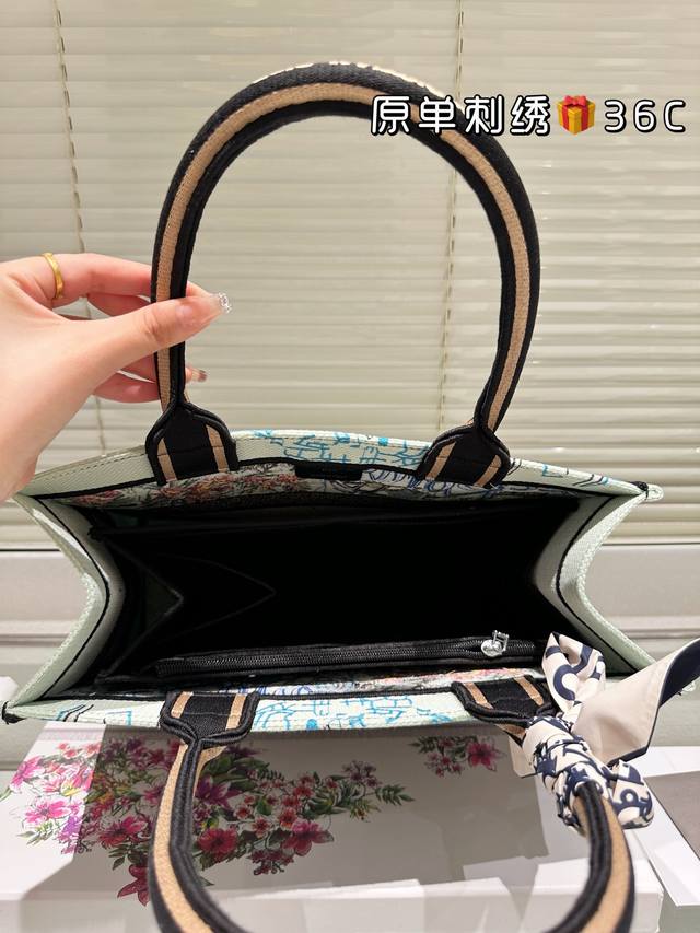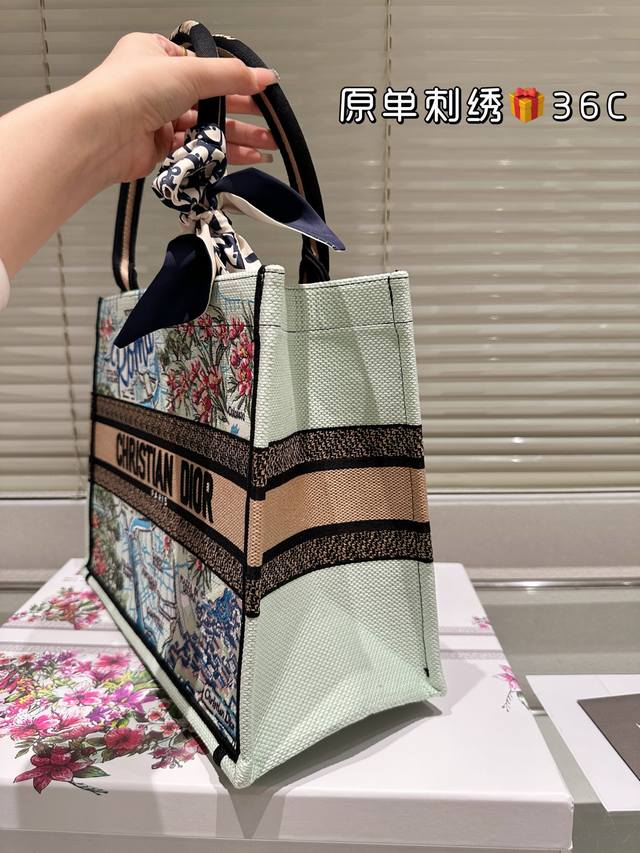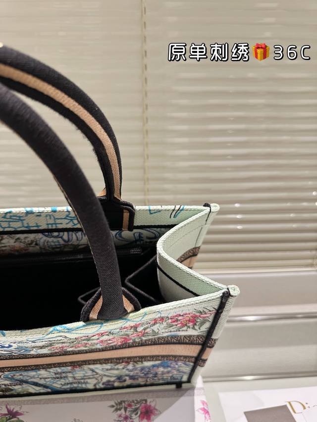 Dior Book Tote今年最喜欢的一款购物袋 Tote我用的次数最多的包,因为容量超级大,不管什么东西都向里面放,当然凹造型也是必须有的,这款Dior老花是我最喜欢的颜色,柜台出了很多颜色及花型,最后挑了这个颜色 小号的精致有型 配折叠礼盒 尺寸42Cm 36Cm 26Cm