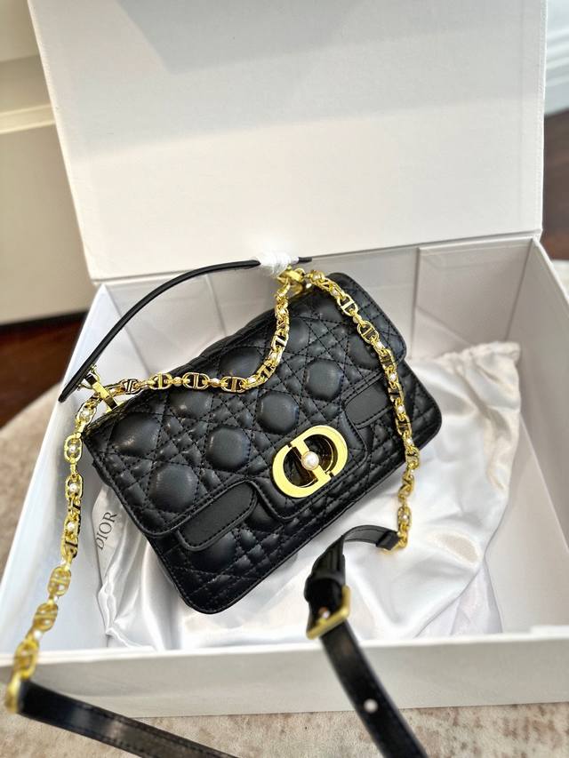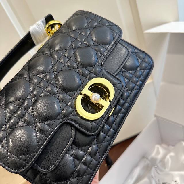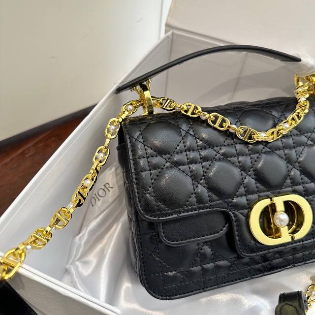折叠礼盒包装 Dior New 新款Dior Jolie 手提包 2025春夏新品,小牛皮材质,兼具优雅气质与实用功能,藤格纹多层设计,容量最佳!搭配可拆卸手柄与可拆卸链条肩带,肩带由皮革带和Cd标志链环组成,饰以白色树脂珠饰,可舒适手提、肩背或斜挎。 尺寸 22*14