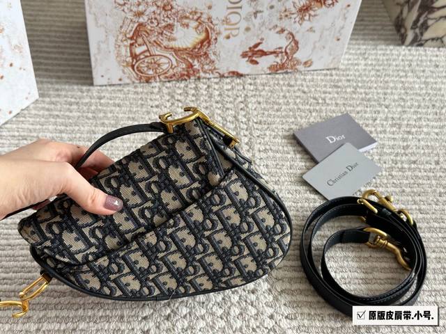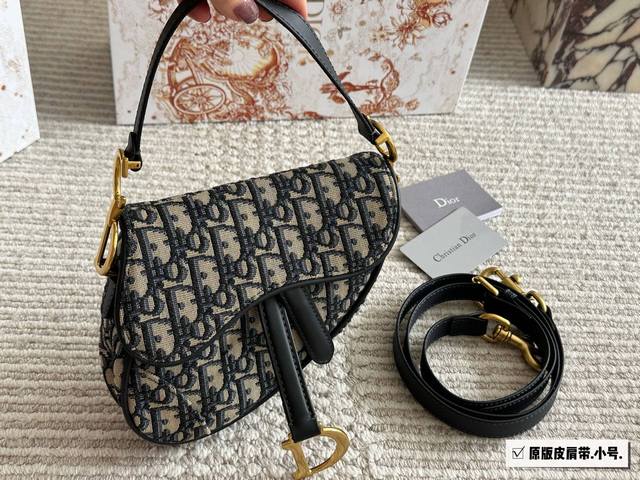 / 配盒 皮肩带 尺寸:25Cm*20Cm 大 18Cm*15Cm 小 升级版出货 D家 老花马鞍包 配深蓝色牛皮长肩带 搜索Dior 迪奥