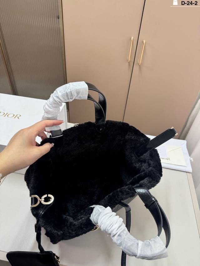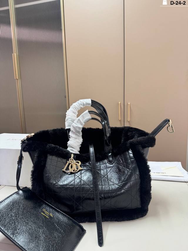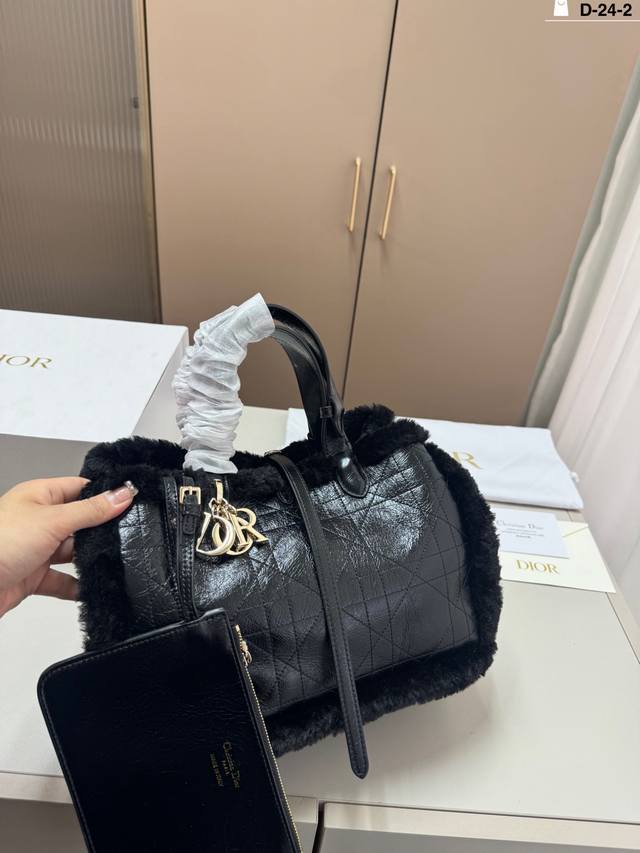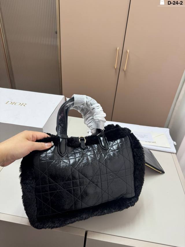 D-24-2尺寸30×20折叠盒 DDD Dior皮草Toujours包 DDD 泰迪熊配色的皮毛一體不稀奇 DDD 來個很酷的黑色Shearling吧 DDD 當個冬日Dior Cool Girl DDD