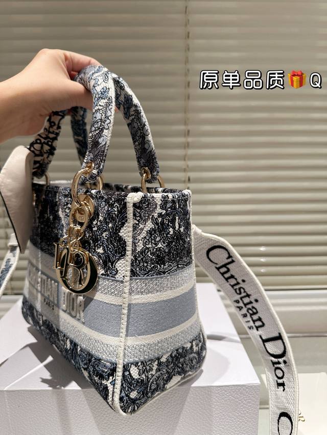 复刻版 原版布 Dior Lady D-Lite刺绣包明星同款 刺绣戴妃配斜挎带 D家最具有代表性的包包,拥有众多的粉丝~D家 Lady D-Lite~诞生于2