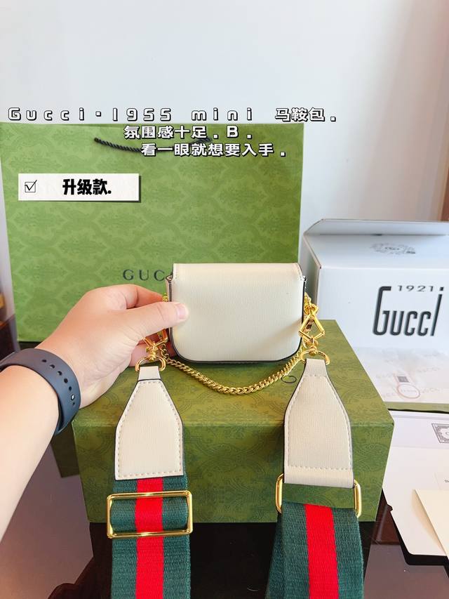 配礼盒. 酷奇gucci 1955 马鞍包 经典马衔扣 复古感拉满 简洁大方 却又不失小心机 轻松朾造优雅通勤穿搭尺寸:12*4*8Cm