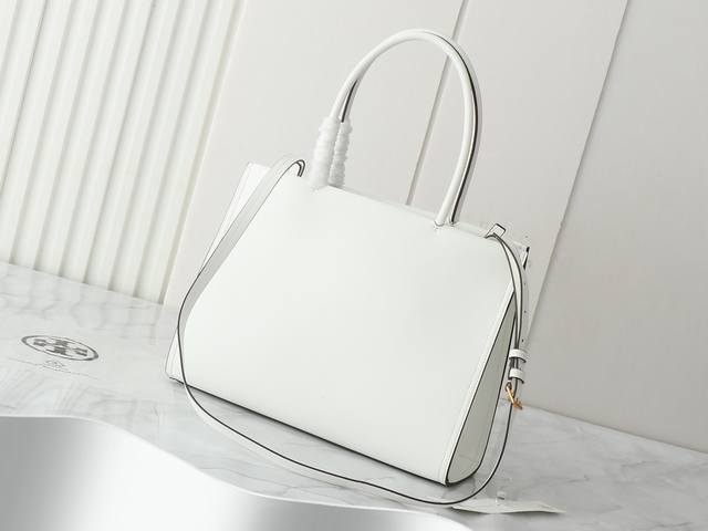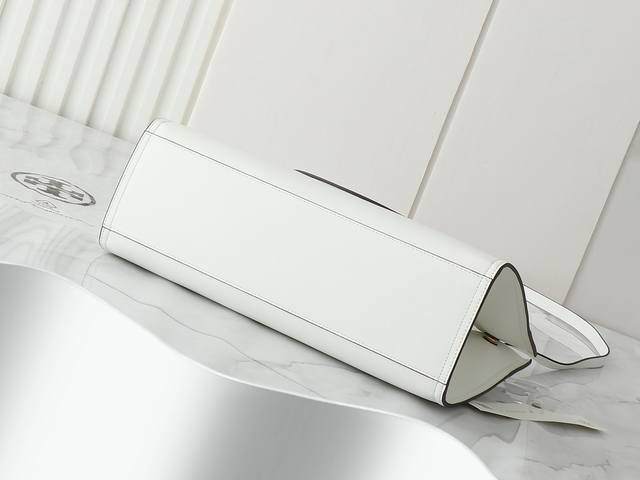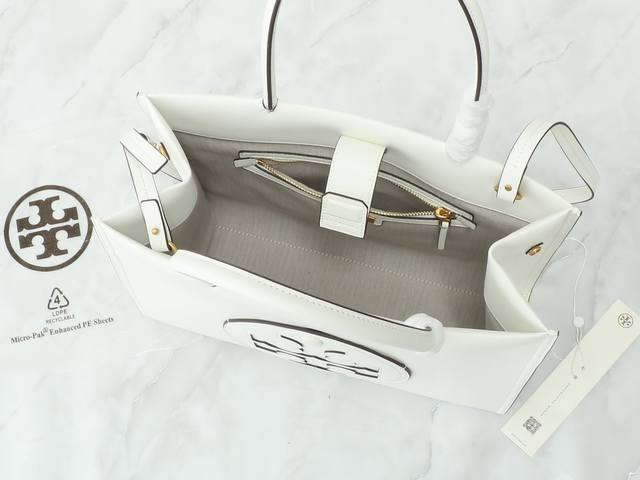 汤丽柏琦自 8年以来一直畅销的托特包,兼具实用与时髦,如今精选耐用奢华、防褪色的创新材质打造。可装下至多13英寸平板电脑外层:合成革 V形棉质内衬磁扣,侧边按扣