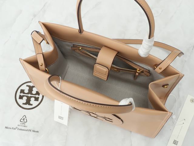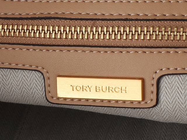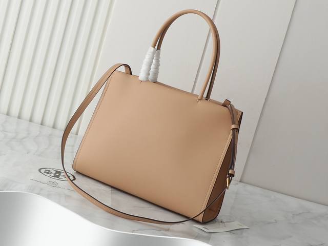 汤丽柏琦自 8年以来一直畅销的托特包,兼具实用与时髦,如今精选耐用奢华、防褪色的创新材质打造。可装下至多13英寸平板电脑外层:合成革 V形棉质内衬磁扣,侧边按扣