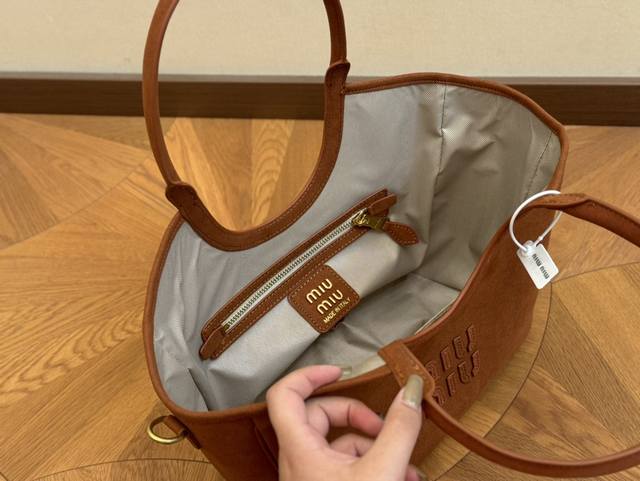 Size:28*24Cm Miumiu新款托特tote 今年的风刮的太猛了 老多爆款了! 这款的版型也太好看了吧! Miumiu 这一季不管是单肩包还是托特包都