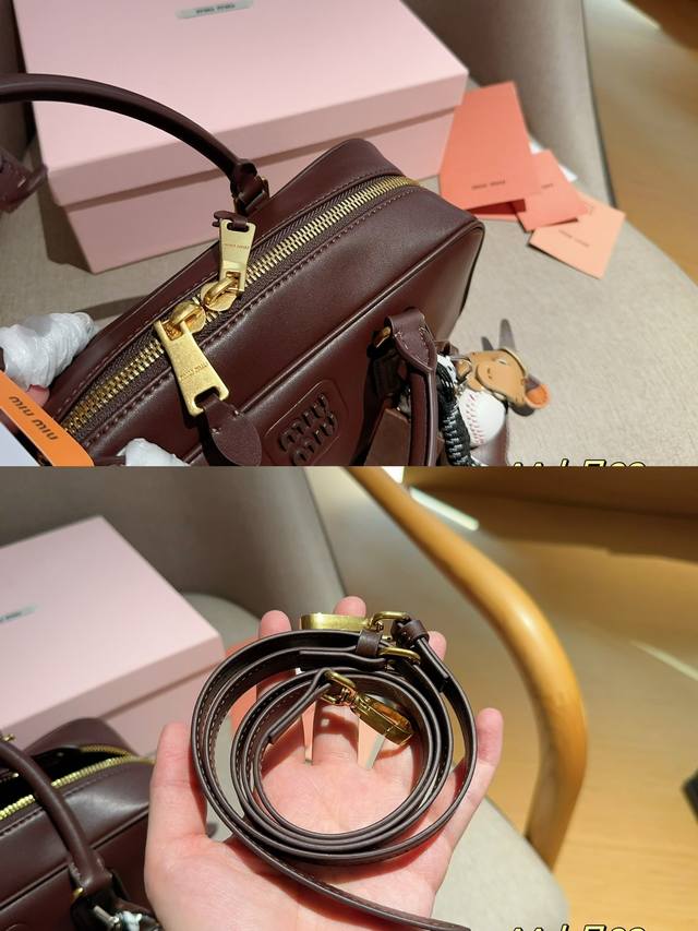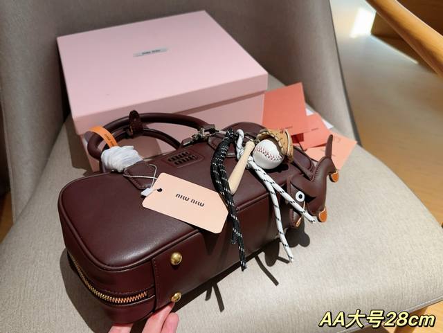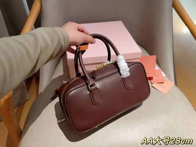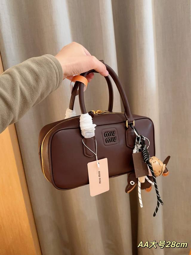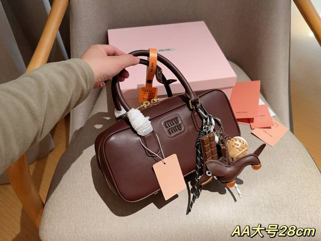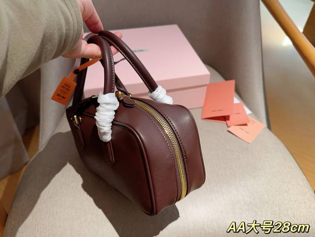 大号 配送挂件 Miumiu 复古保龄球波士顿枕头包 手提小方包 尺寸28Cm 礼盒包装