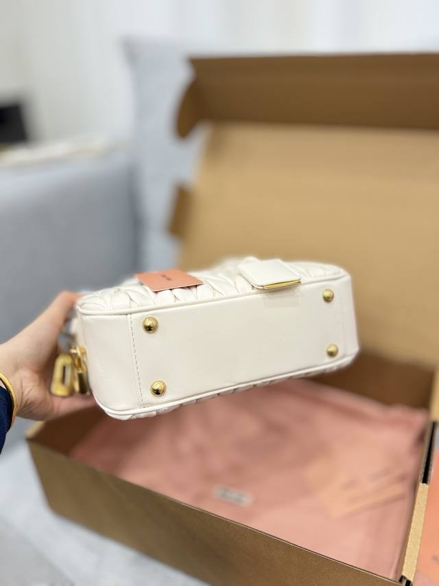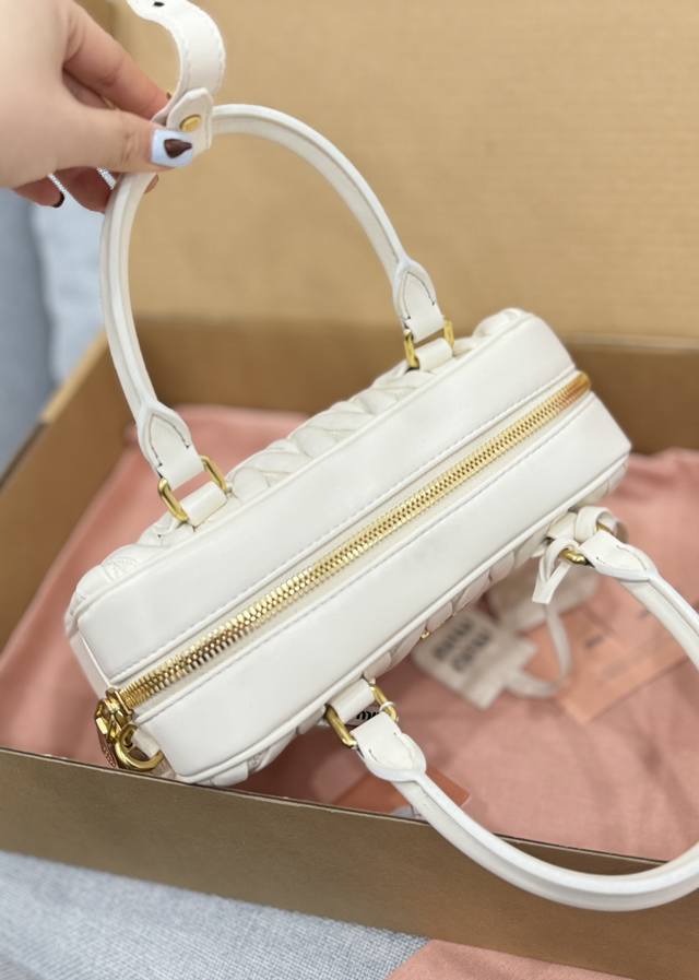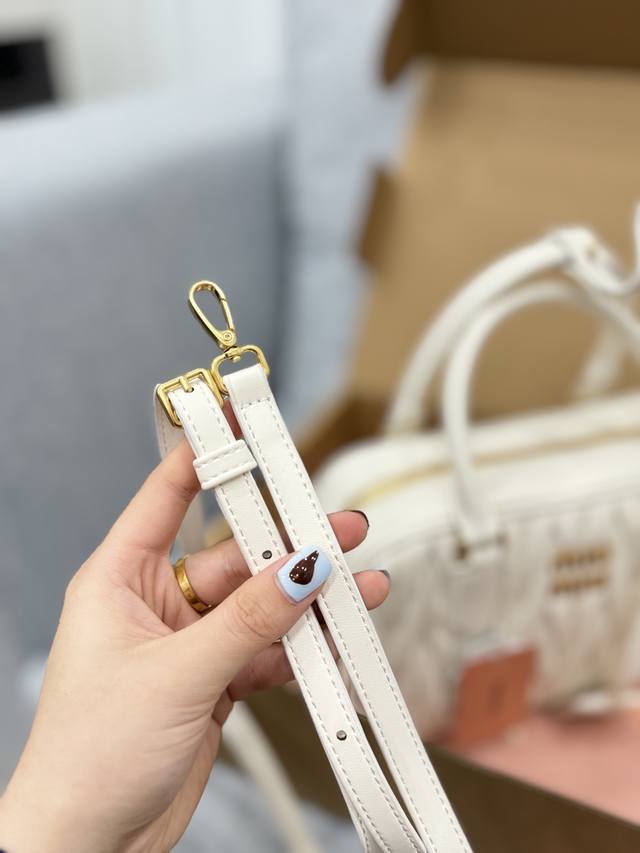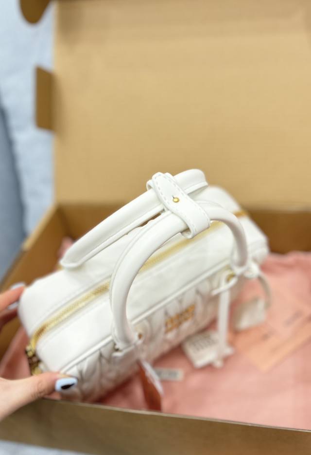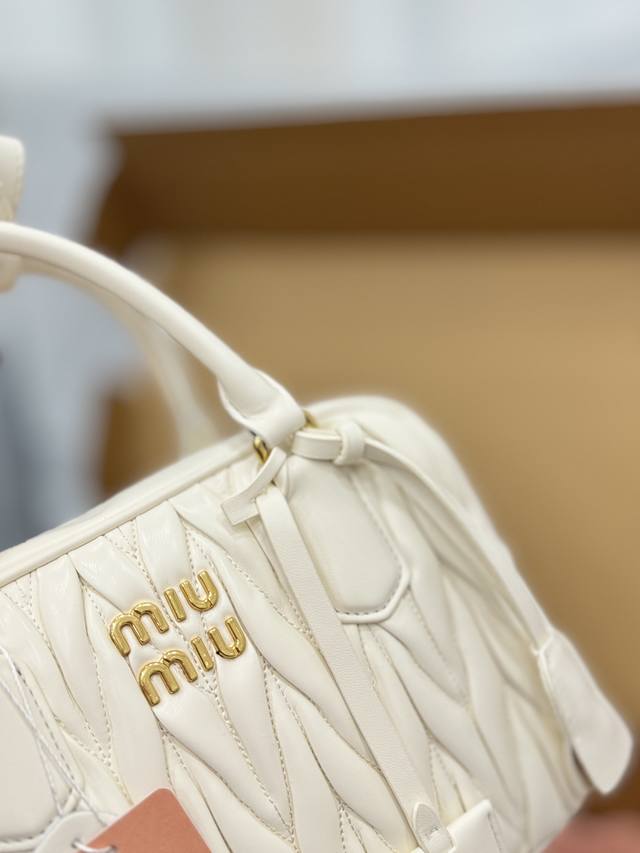 大号 配飞机盒 Size:24.5×17 Miu Miu缪缪 Matelassé 褶皱 保龄球 单肩斜挎手提包 有肩带 Arcadie系列matelasse顶部