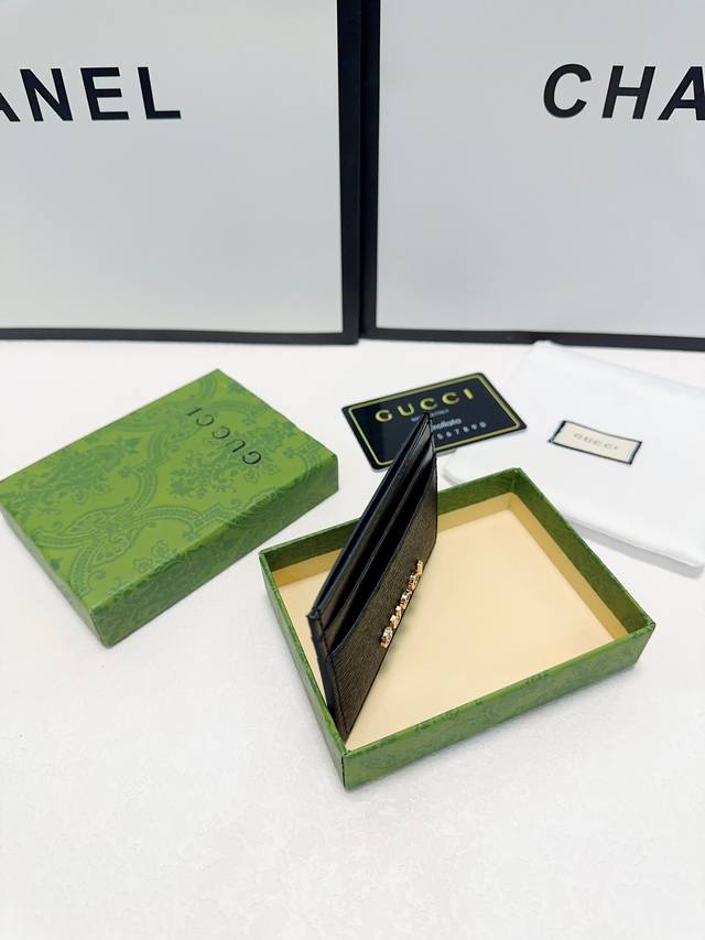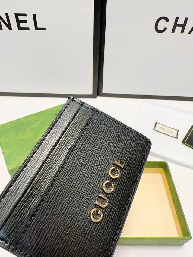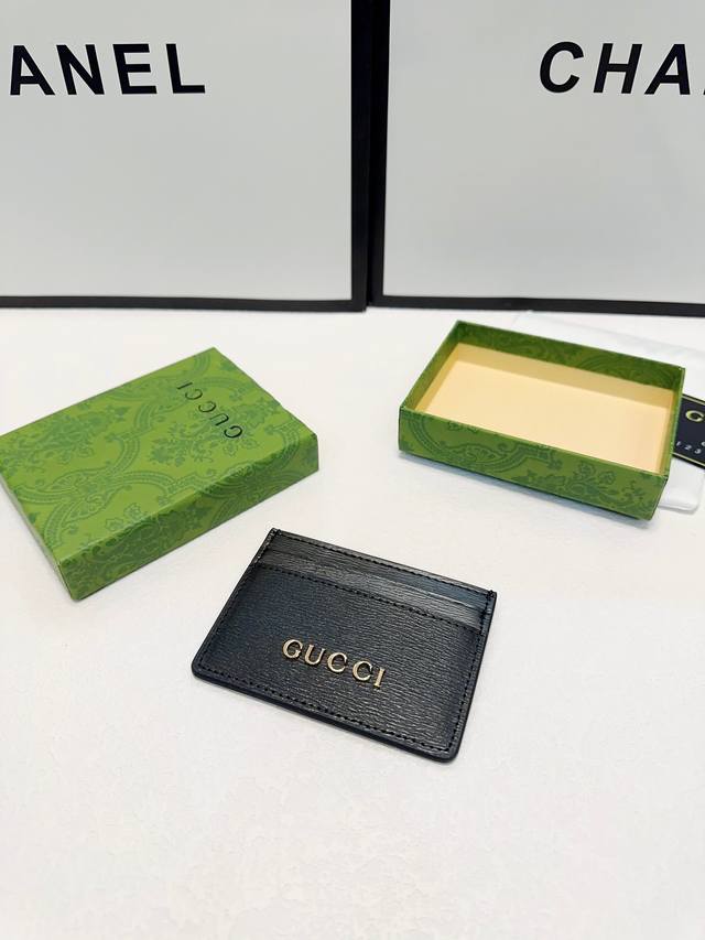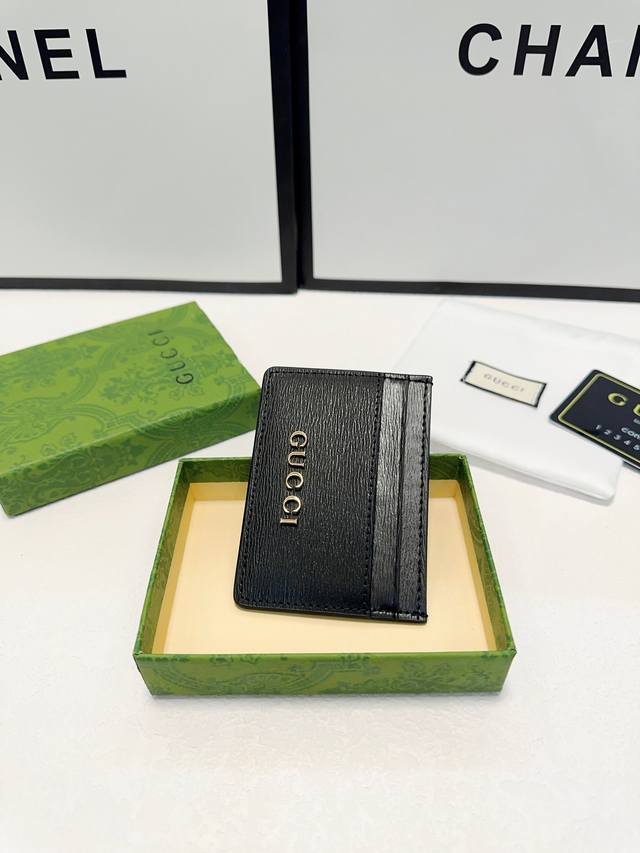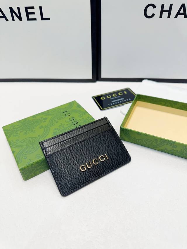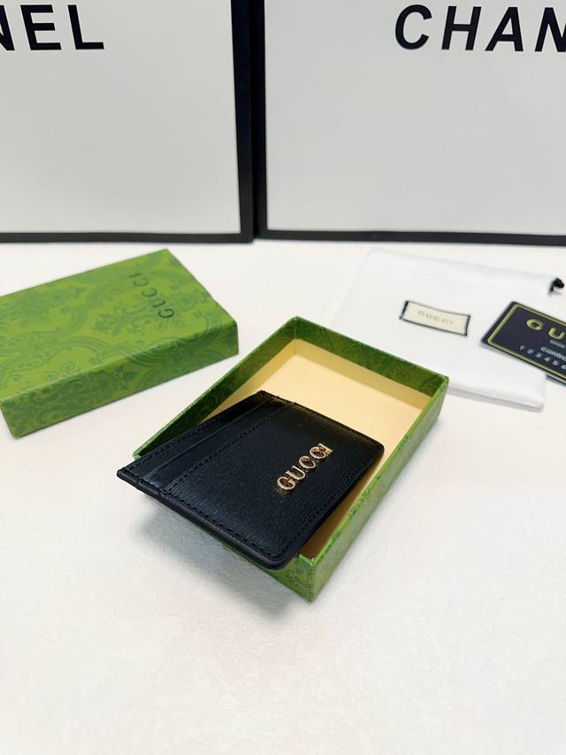 / 颜色 黑尺寸 10X7饰手写体gucci标识卡片夹。以不设限的可能性探索自我表达方式已成为品牌设计的精神内涵。这款卡片夹以黑色皮革匠心打造,缀饰金色调手写体gu