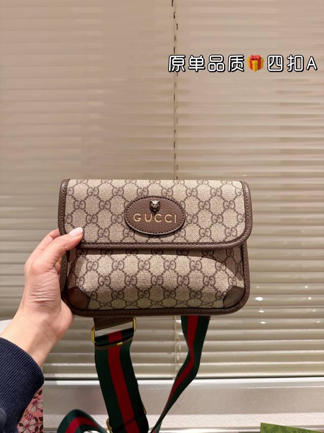原版牛皮 原单顶级版 虎头腰包 胸包 男女同款 最新系列 配原版乌木色牛皮~这个款复古韵味特别浓,对版肩带 ,原版内里 上身效果也超赞,主要以精致特别的五金来提升整体质感。密封礼盒包装 Size:20Cm