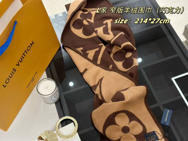 / 爆款围巾现货 全部配密封丝带礼盒 软乎乎的lv山羊绒窄版围巾