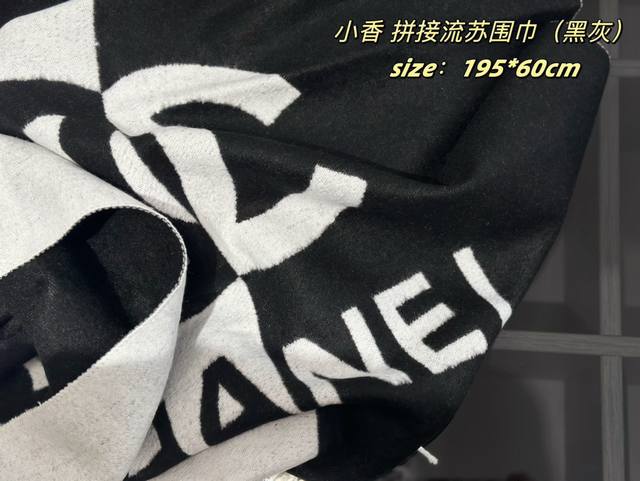 爆款围巾现货 配密封丝带礼盒 小香 24A 拼接流苏围巾 拿在手里软软糯糯的感觉 喜欢简单搭配就来这个哦 上身高级 没有廉价感 尺寸:195*60Cm