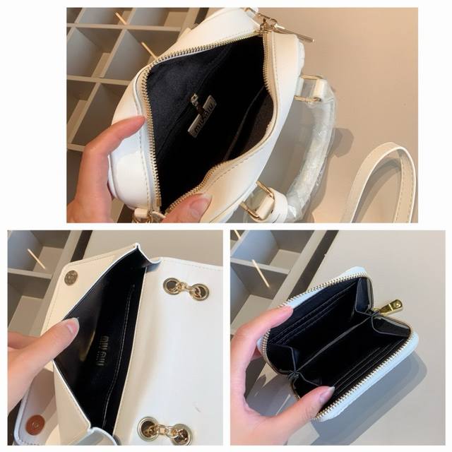 产品介绍 Miumiu新款白色系列超值组合miumiu专柜爆款刺绣褶皱手提包~可肩背!原版面料五金!手感超级棒!搭配miumiu经典褶皱链条包!超级百搭实用!Miumiu褶皱系列小单拉钱包~超级可爱百搭!
