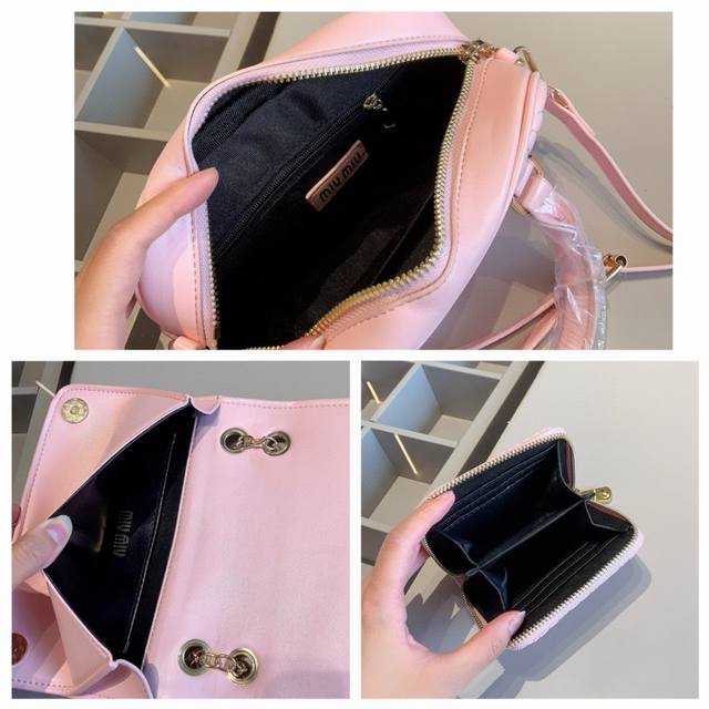 产品介绍 Miumiu新款粉色系列超值组合miumiu专柜爆款刺绣褶皱手提包~可肩背!原版面料五金!手感超级棒!搭配miumiu经典褶皱链条包!超级百搭实用!Miumiu褶皱系列小单拉钱包~超级可爱百搭!