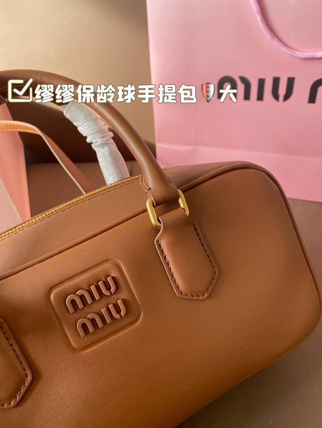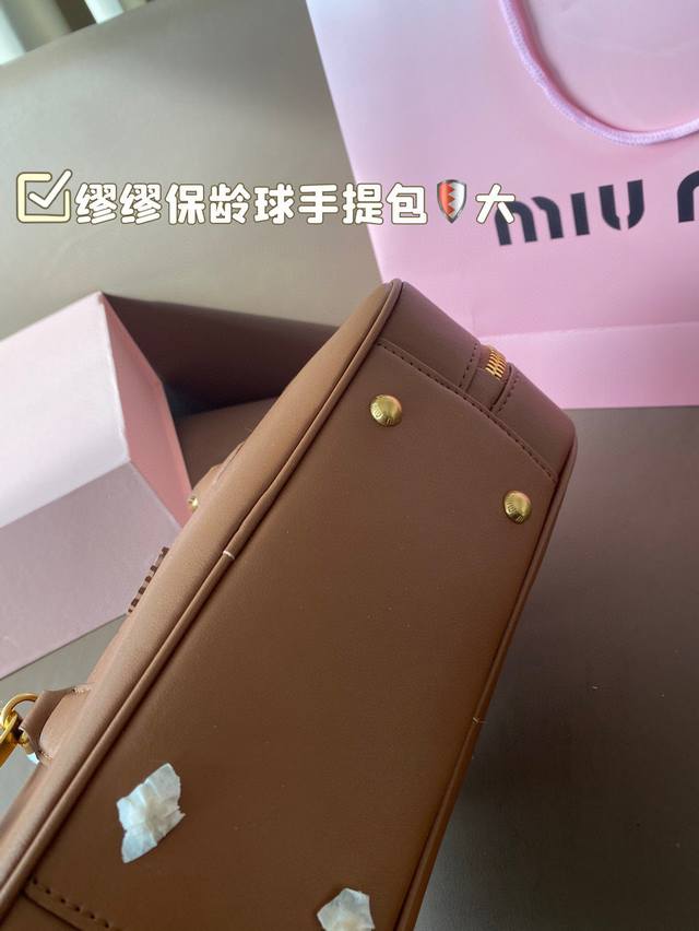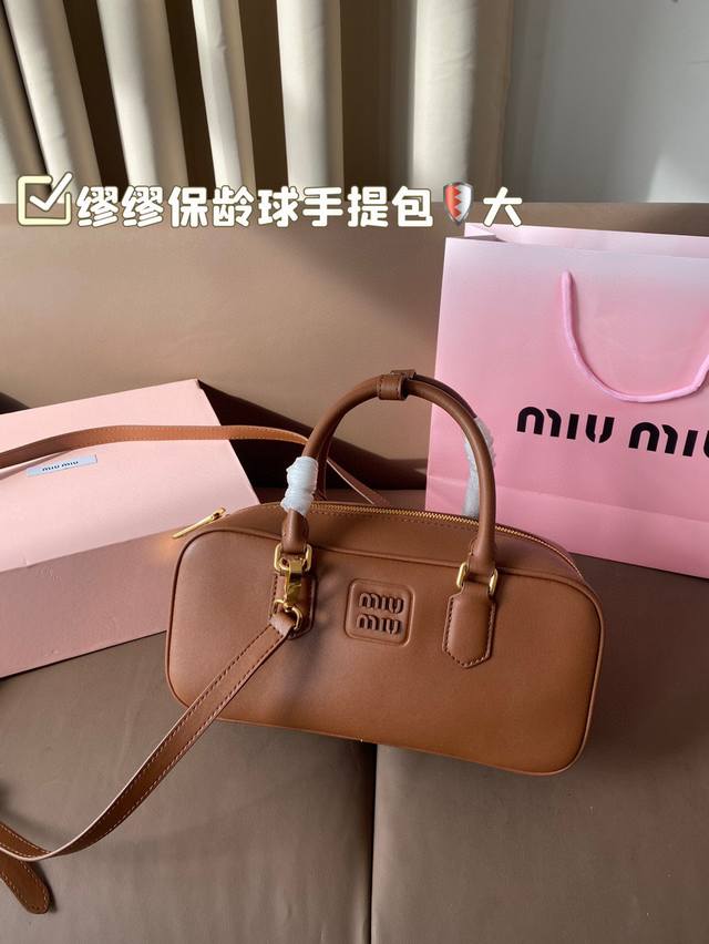Miumiu保龄球复古包包:棕色保龄球包复古感拉满!和长靴同色系呼应,质感在线还能装,整套Look的复古氛围全靠它点睛22Cm,28Cm...